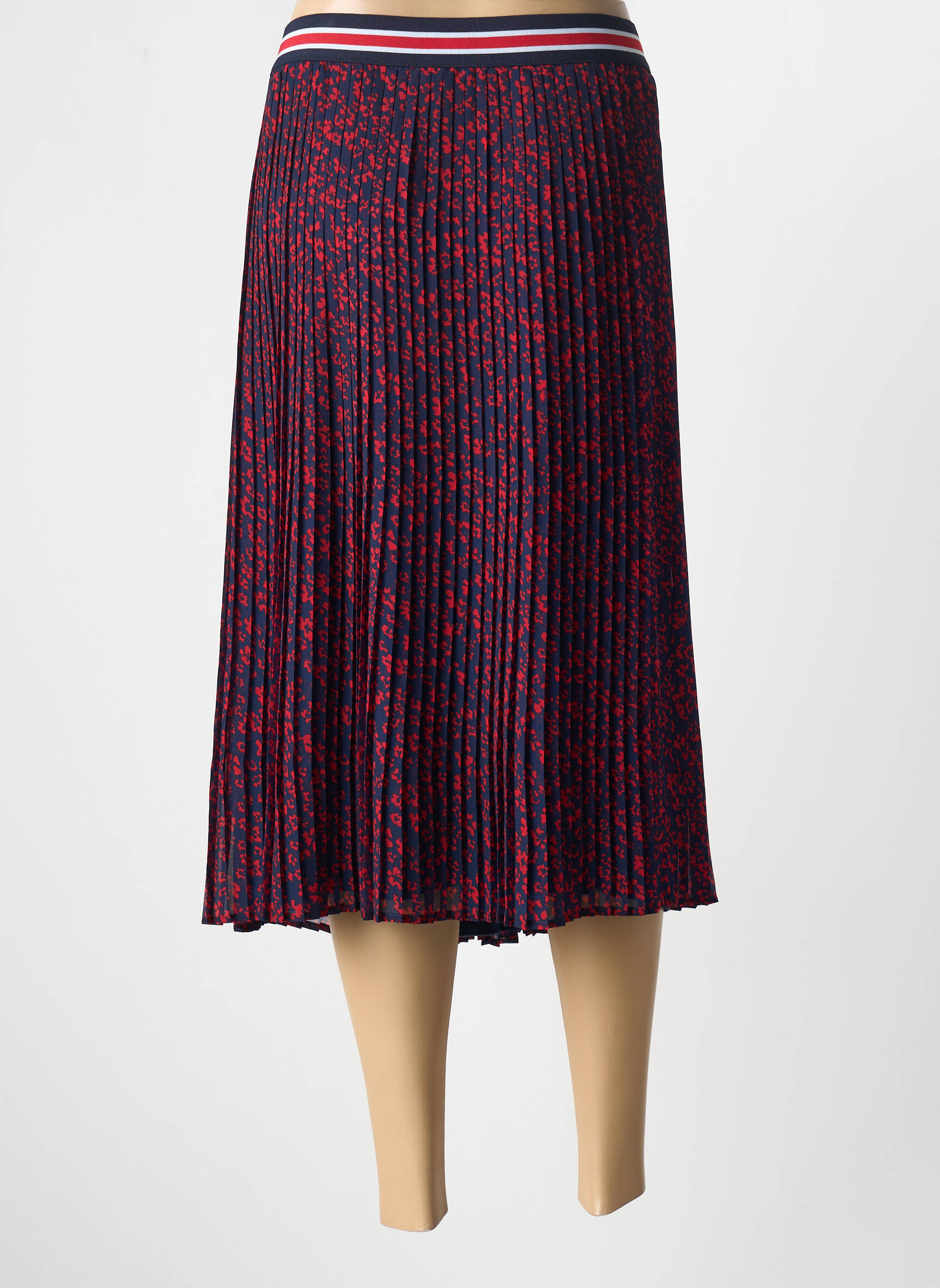 Ne passez pas à côté de cette jupe mi-longue Thomas Rabe à prix tout doux, idéale pour donner du style à votre garde-robe sans vous ruiner. On aime particulièrement son joli motif à petites touches rouges sur fond marine et sa coupe plissée qui apporte élégance et légèreté à chaque mouvement, tandis que la taille élastiquée rayée ajoute une note moderne et confortable pour un look tendance à petit prix.