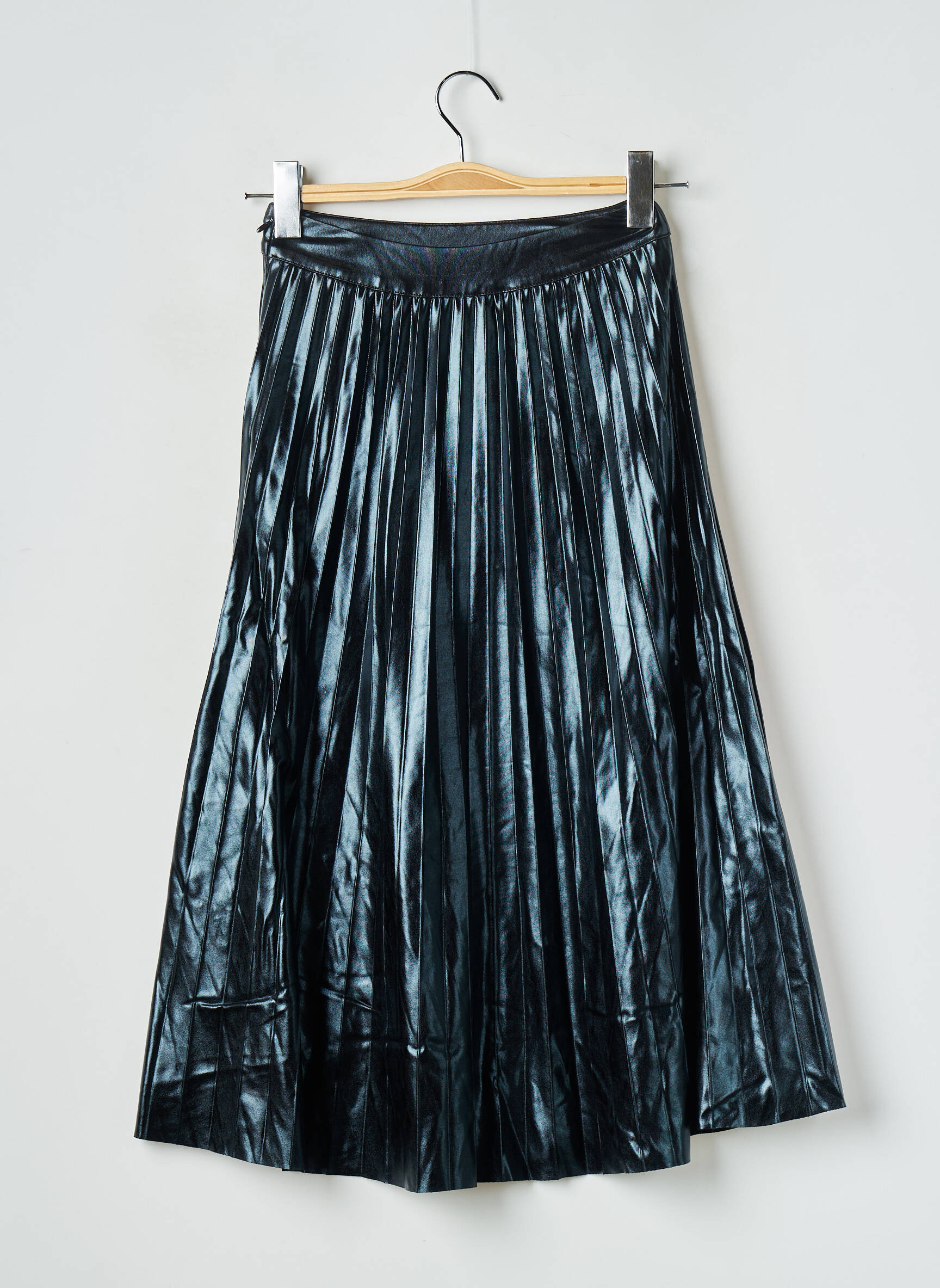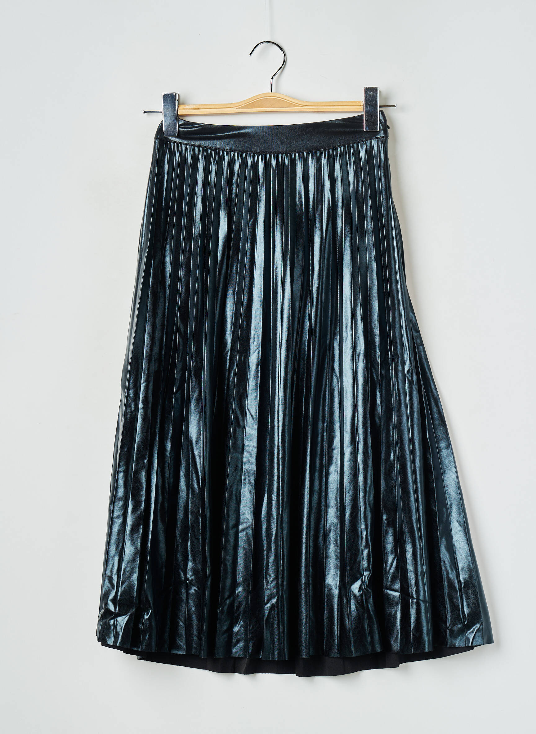 Jupe midi plissée en cuir synthétique Black. Composition :95% Polyester, 5% Elasthanne