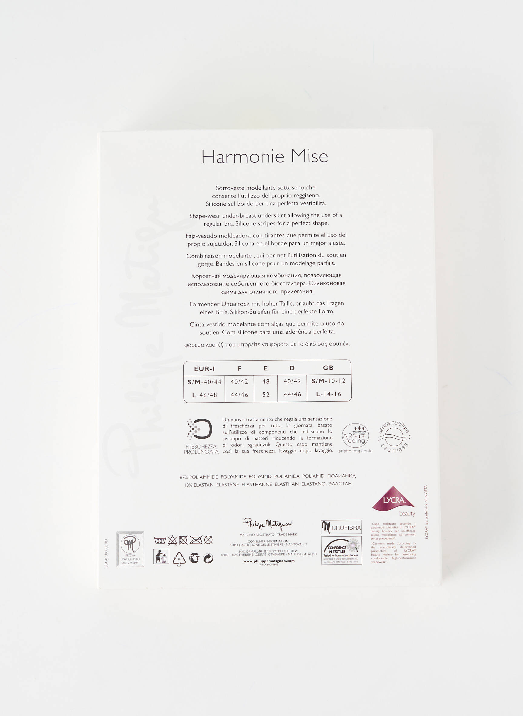 - Composition : 87 % Polyamide, 13 % Elasthane