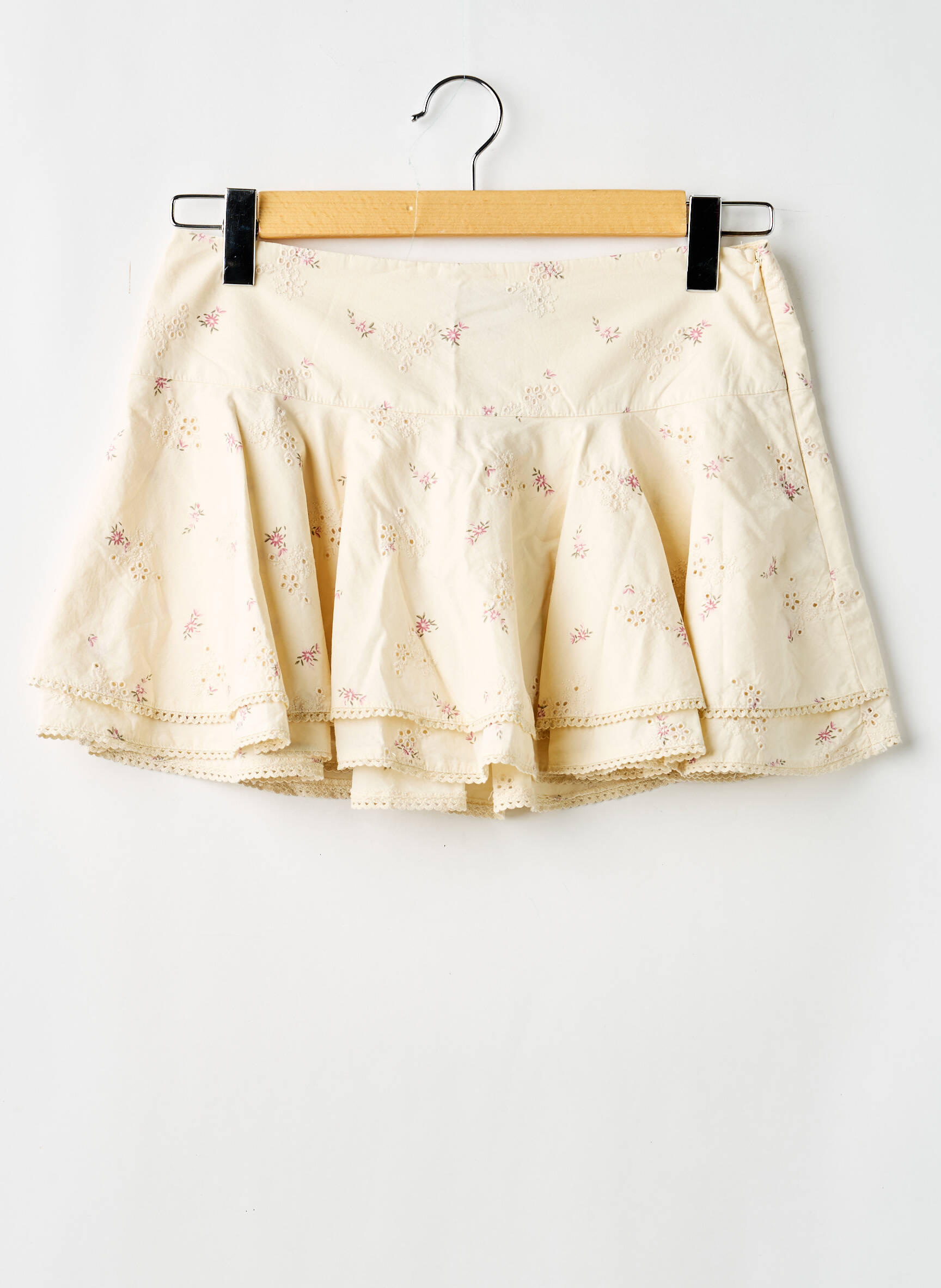 Craquez pour cette mini-jupe ZARA pour femme à prix mini, la pièce parfaite pour donner une touche de fraîcheur à votre garde-robe sans vous ruiner. Son tissu léger et sa coupe évasée sublime la silhouette tout en offrant un confort optimal, tandis que son imprimé fleuri délicat et ses finitions festonnées apportent une note romantique idéale pour les beaux jours. Saisissez cette opportunité et misez sur l’élégance à petit prix avec ce coup de cœur de la saison !