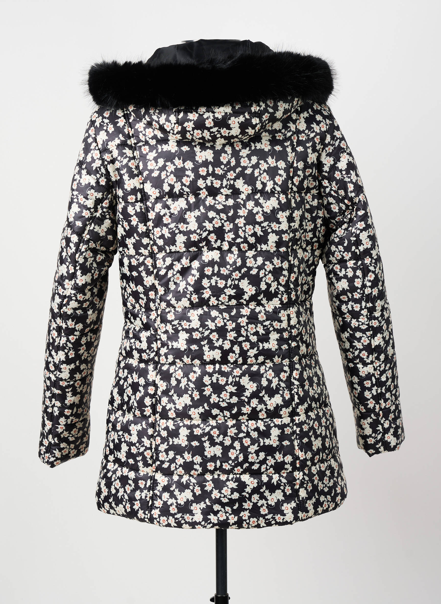 Pour un look quotidien plein de fraîcheur, cette doudoune se marie facilement avec un jean slim brut et des bottines noires pour une allure moderne et décontractée. Pour accentuer le côté féminin, il suffit d’ajouter une écharpe oversize unie et un bonnet assorti. Elle peut aussi être portée sur une robe pull et des collants opaques, apportant une touche florale à une tenue hivernale classique. Ce modèle s’accorde aussi très bien avec un pantalon en velours ou un legging foncé pour apporter contraste et confort, parfait pour profiter du confort sans compromettre le style.