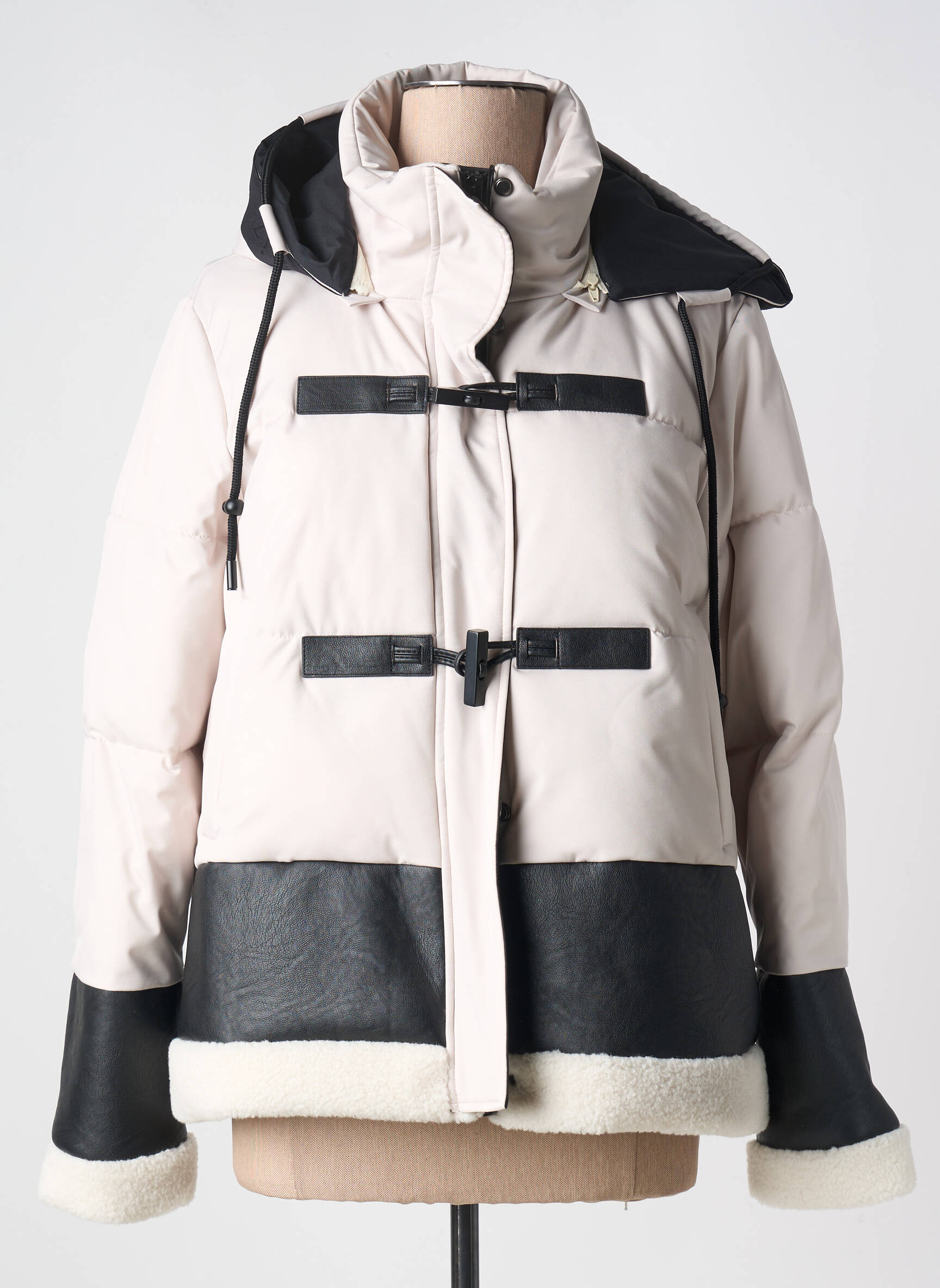 Profitez d’une belle occasion pour vous offrir cette doudoune ZIA BRAND pour femme, parfaite pour allier style contemporain et chaleur à prix malin. Son design élégant contraste les empiècements noirs effet cuir et les finitions moutonnées à la douceur du tissu écru, tandis que la capuche ajustable et les attaches façon duffle-coat ajoutent une touche urbaine pratique et tendance. C’est le bon plan idéal pour rester chic et confortable tout l’hiver sans se ruiner !