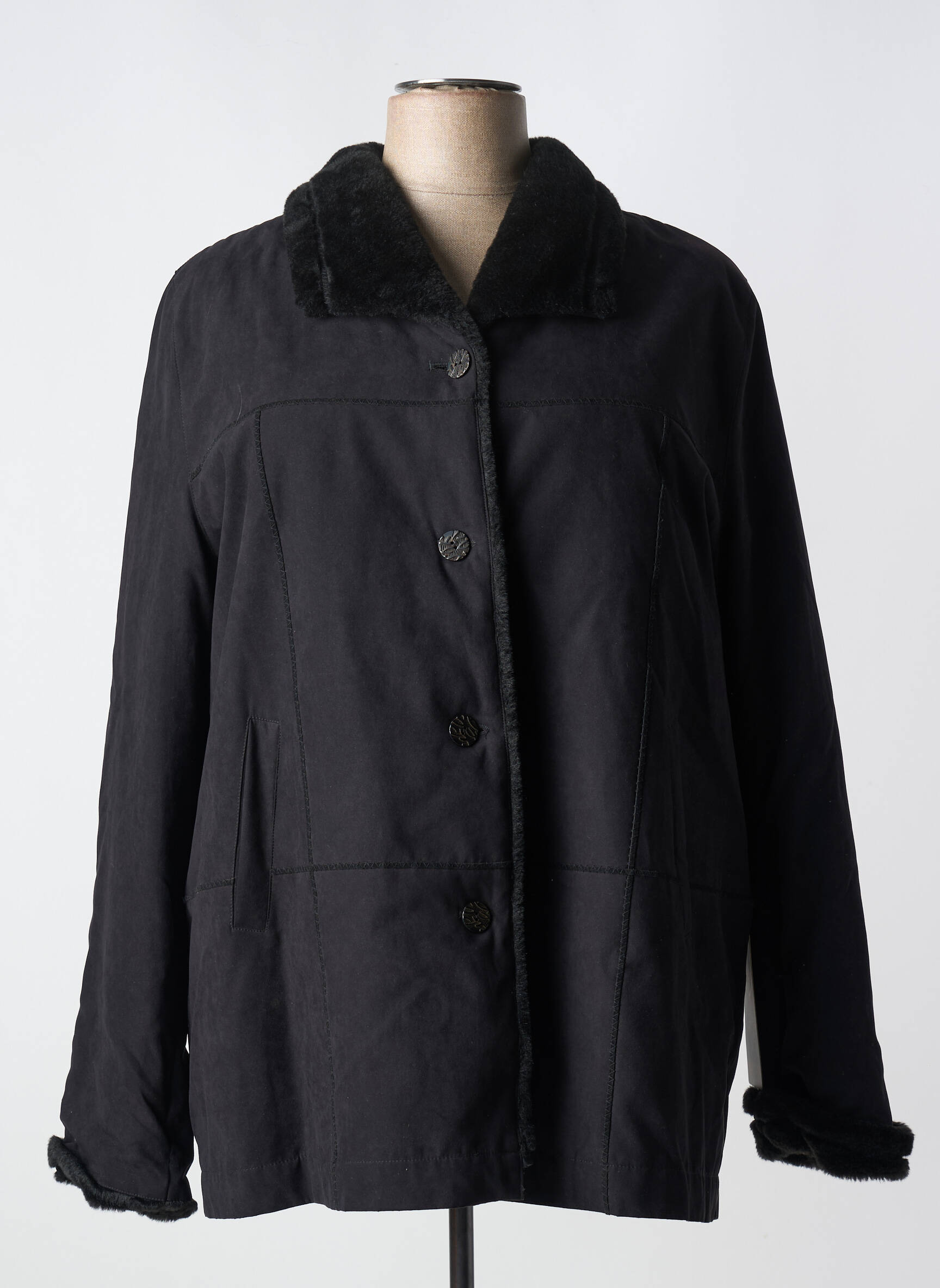 Profitez d'un prix irrésistible sur ce manteau court signé NURIA VILARDAGA, une pièce incontournable à prix mini pour compléter votre garde-robe hivernale. Ce modèle au design épuré séduit par sa couleur noire passe-partout, sa coupe droite facile à porter au quotidien et son col à revers en fausse fourrure pour une touche cosy et élégante. Les larges boutons sur le devant ajoutent une note classique, tandis que la doublure douce et ses finitions soignées assurent un confort optimal à petit prix, parfait pour rester stylée tout en réalisant de vraies économies.