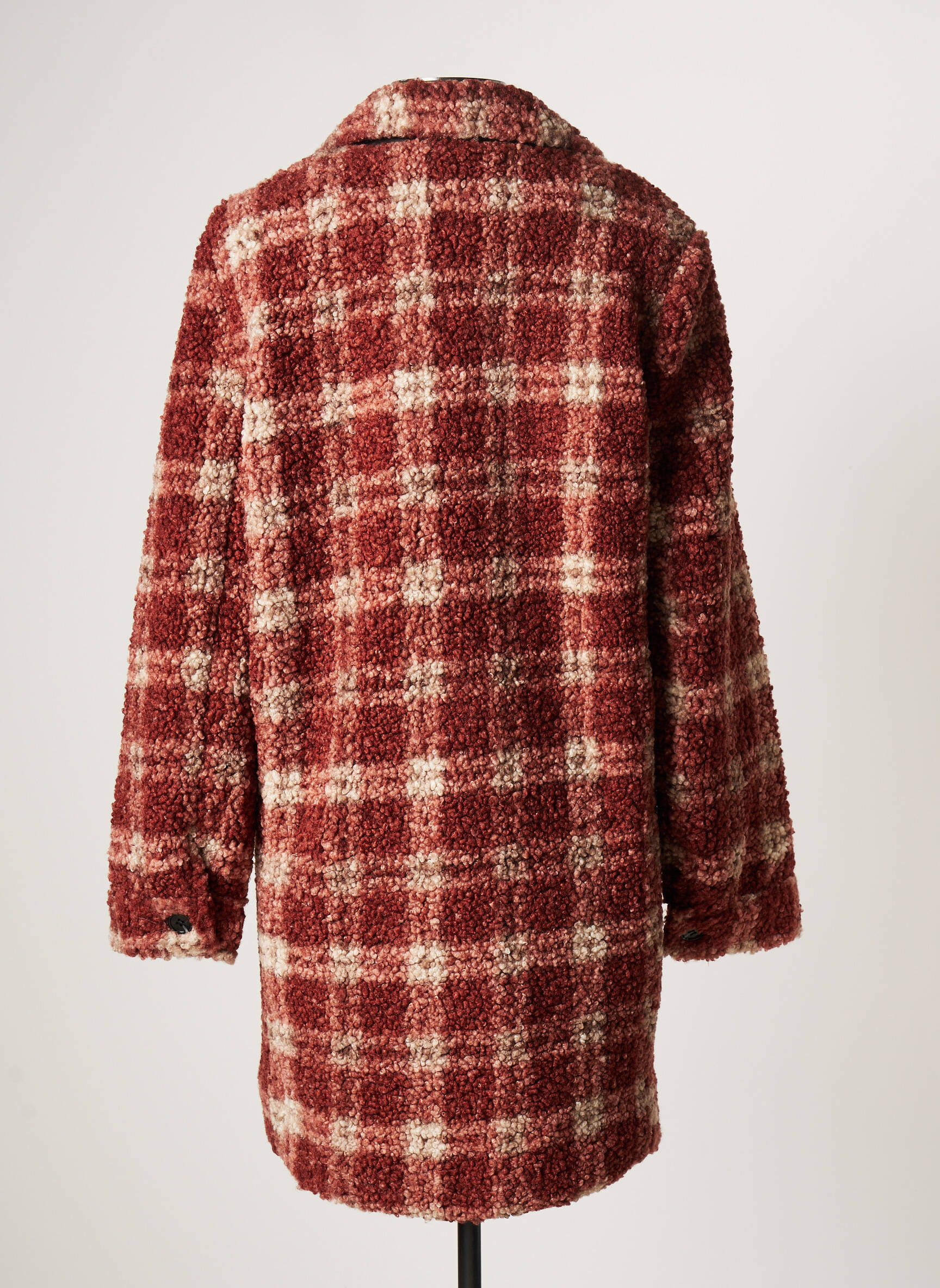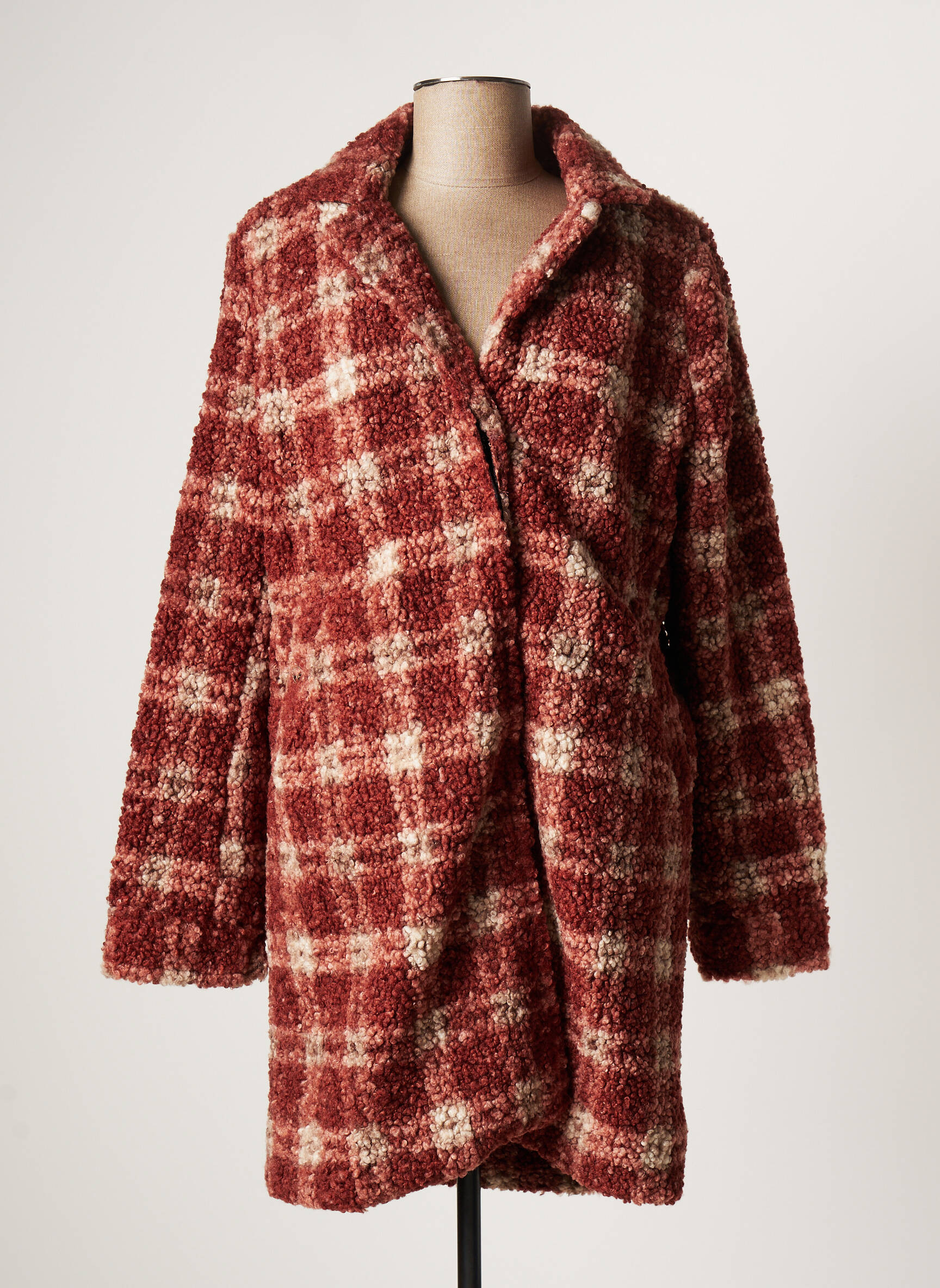 Craquez pour ce manteau long CHATTAWAK pour femme, l’opportunité parfaite de s’offrir une pièce tendance sans se ruiner. Son motif à carreaux bordeaux et écru apporte une touche rétro et chaleureuse à tous vos looks, tandis que sa matière effet laine bouclée offre un confort irrésistible pour l’hiver. Idéal pour celles qui veulent rester stylées tout en réalisant une véritable économie, ce manteau à prix déstockage vous accompagne au quotidien pour un style affirmé et douillet.