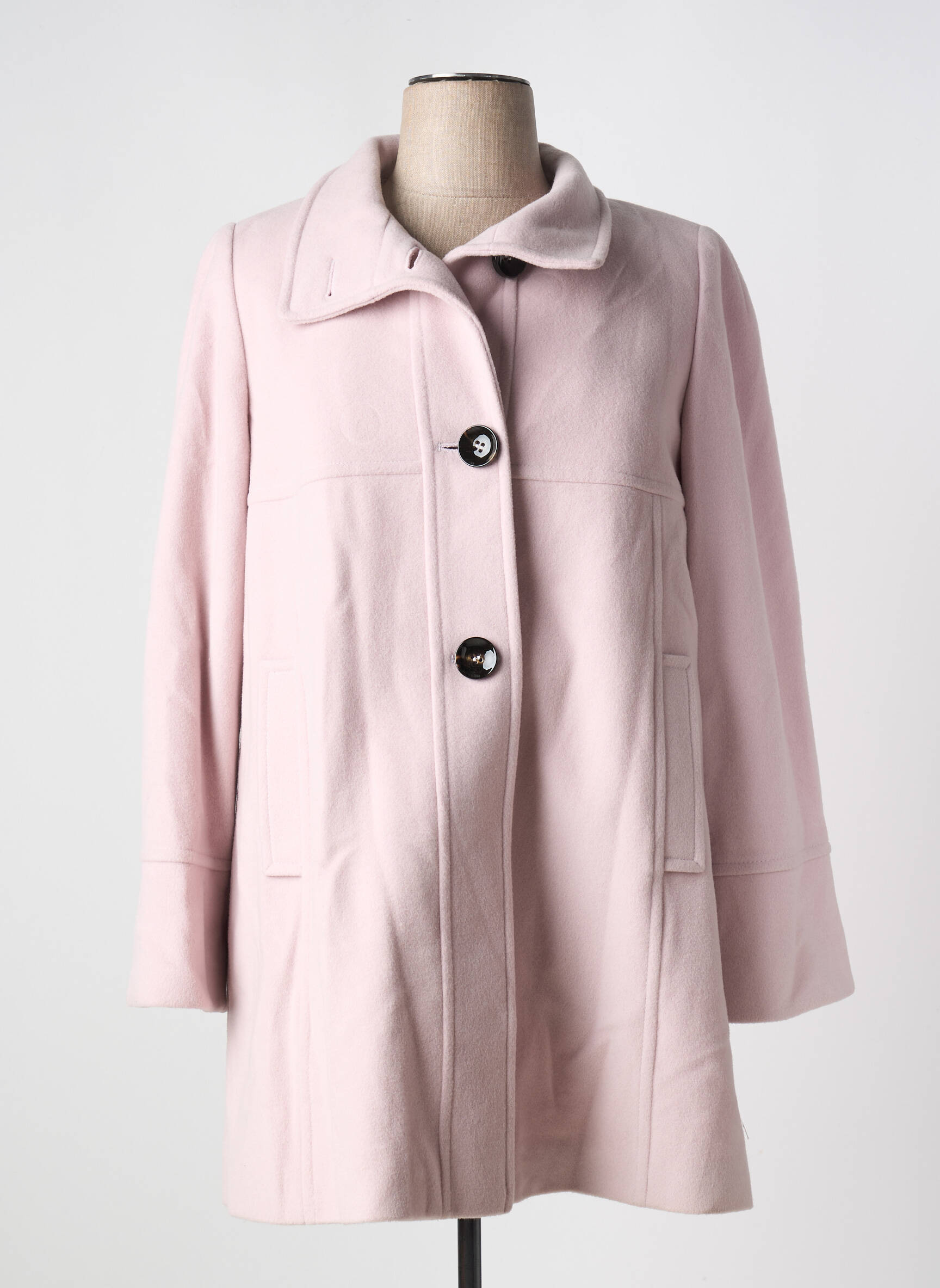Ce manteau long de la marque CONCEPT K pour femme est une véritable opportunité pour allier élégance et petit prix. Son coloris rose pâle délicat apporte une touche de douceur à toutes vos tenues tandis que sa coupe légèrement évasée assure une silhouette moderne et confortable. Les larges boutons contrastés, le col raffiné et les poches discrètes ajoutent du caractère à ce manteau, parfait pour profiter d’un style chic sans se ruiner.