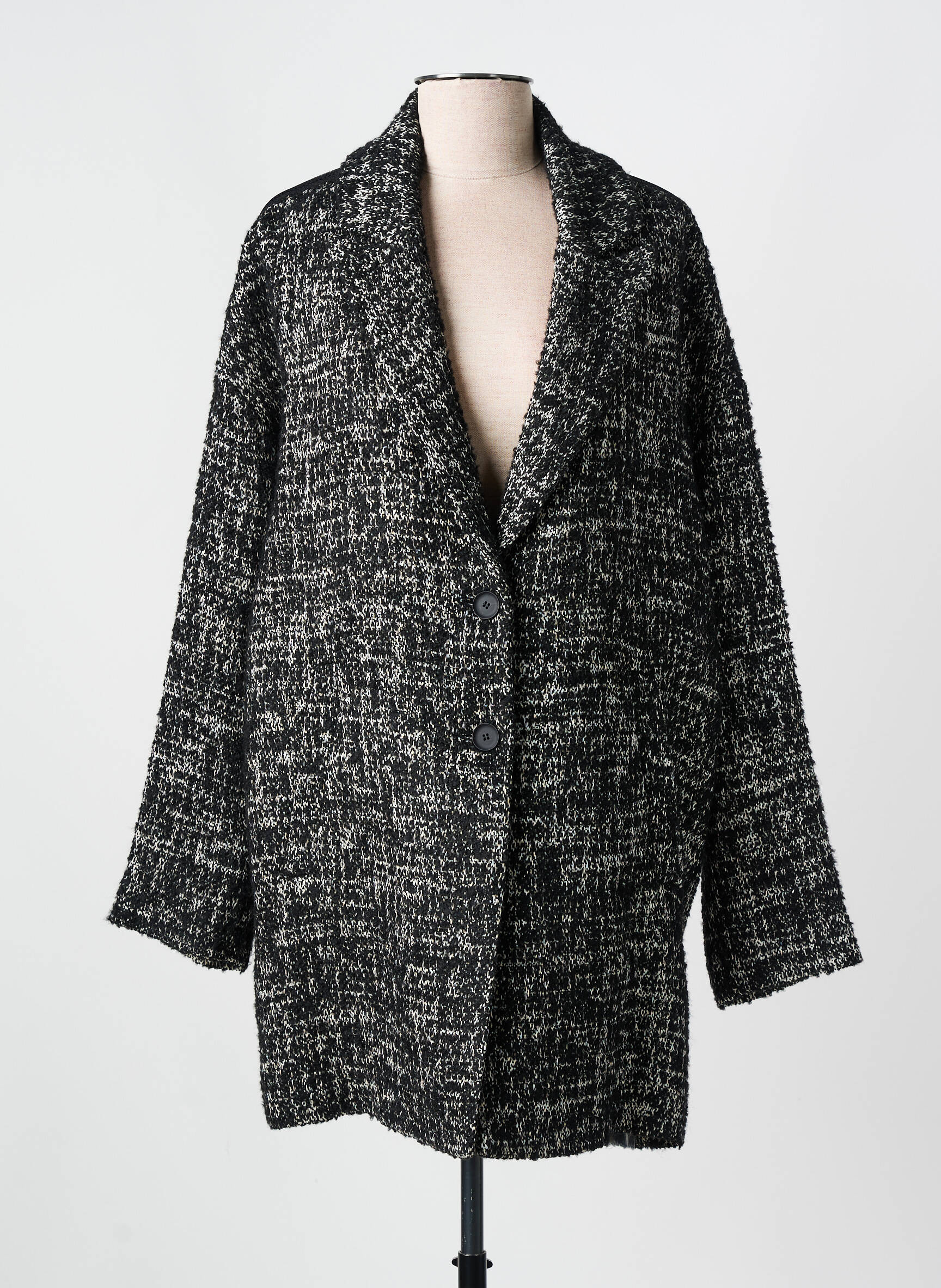 Imaginez enfiler un nuage de chaleur et de style à la fois : ce manteau long signé EVA KAYAN séduit par sa texture épaisse et riche en nuances de noir et blanc qui crée un effet chiné sophistiqué. Sa coupe légèrement oversize avec des épaules tombantes offre un confort absolu tout en apportant une allure décontractée mais élégante, sublimée par un col large qui encadre délicatement le visage. Fermé par deux boutons discrets, ce manteau est un allié parfait pour affronter les journées fraîches avec une touche moderne et raffinée.