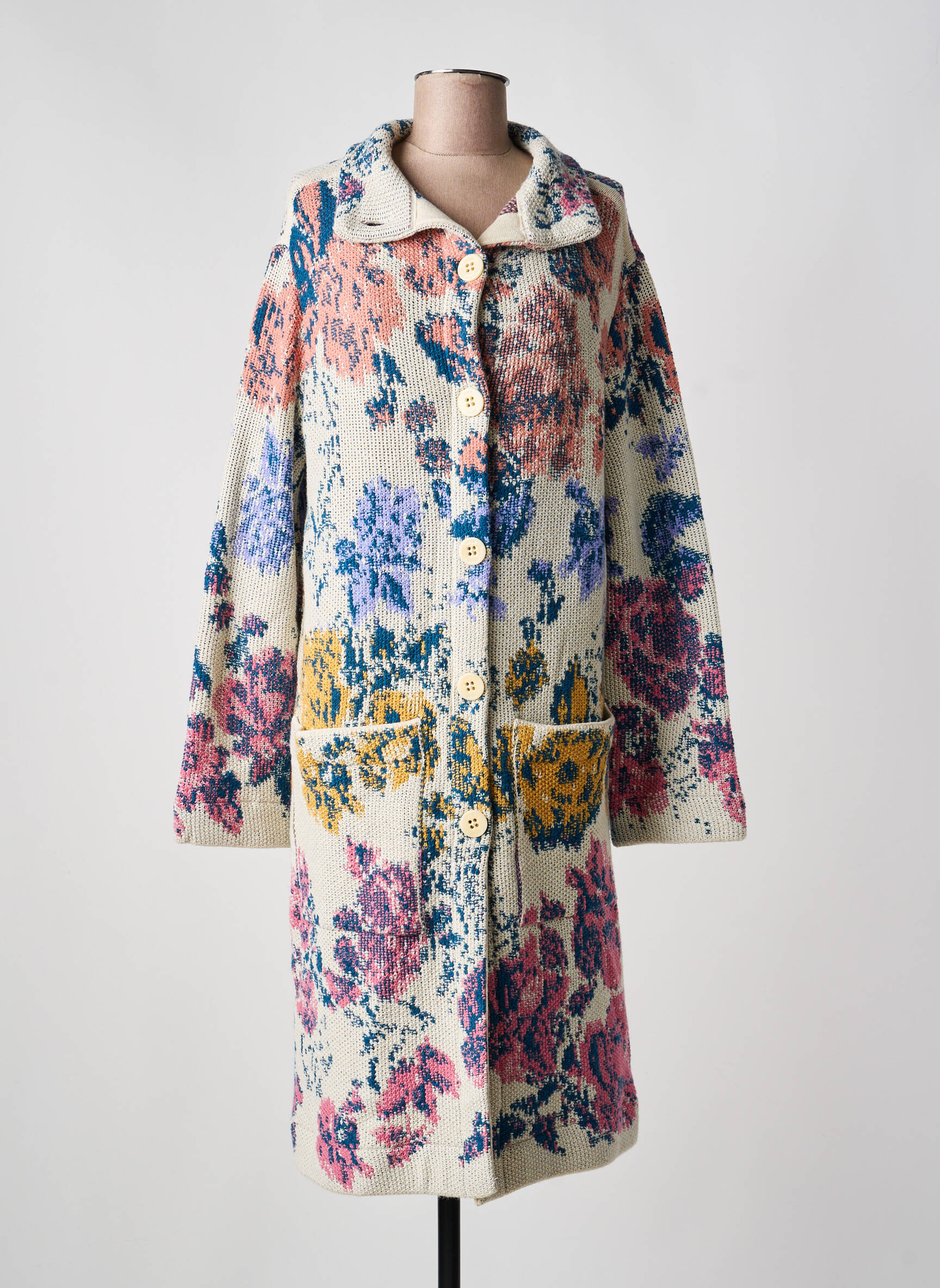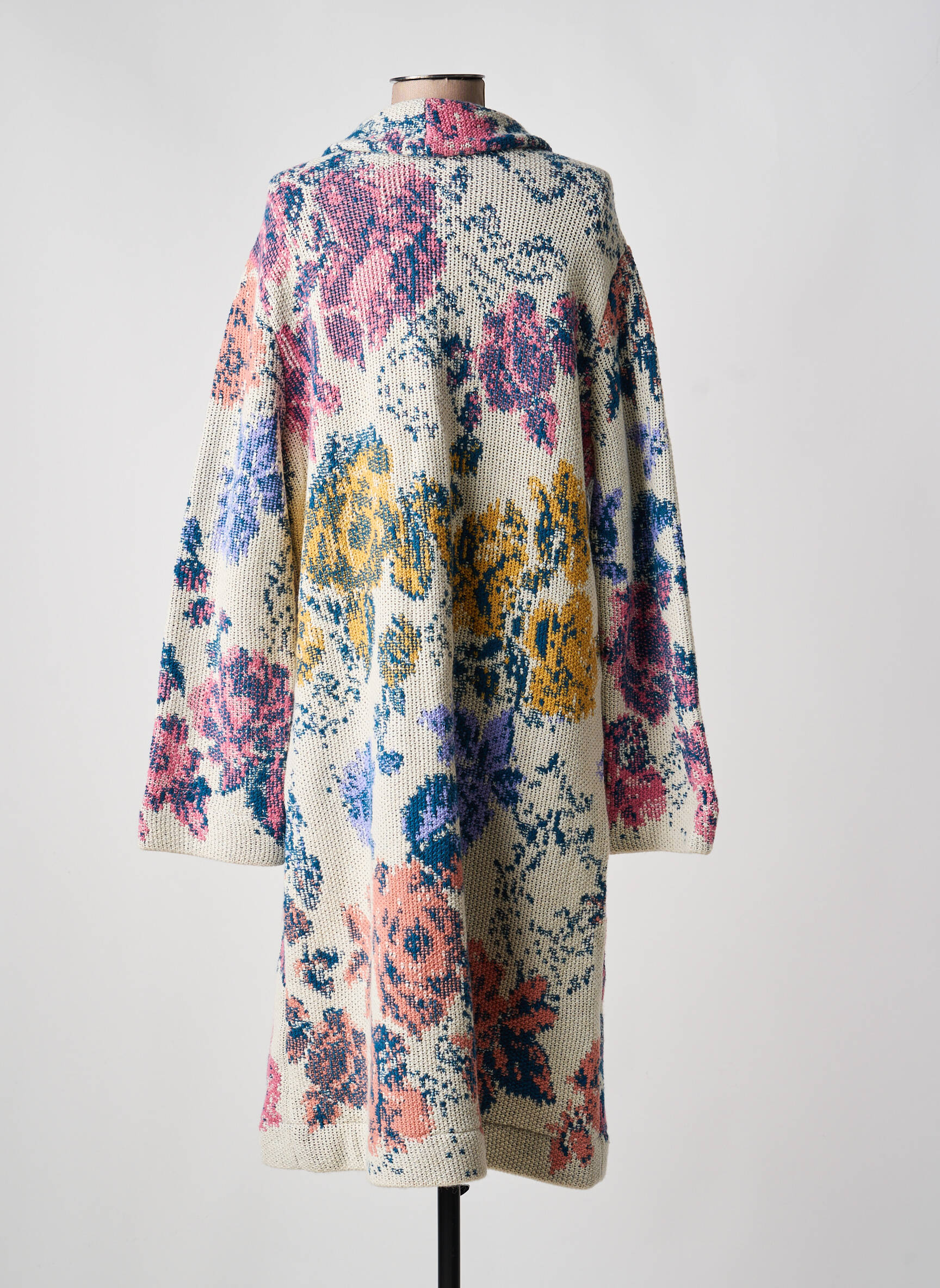 Ce manteau se marie parfaitement avec un jean brut ou un pantalon uni pour laisser toute la place à son motif coloré. Pour un look plus habillé, optez pour une robe sobre et des bottines unies qui mettront en valeur l’originalité du manteau. Un sac à main discret et une écharpe aux teintes neutres viendront compléter l’ensemble sans surcharger la silhouette, pour une allure élégante au quotidien.