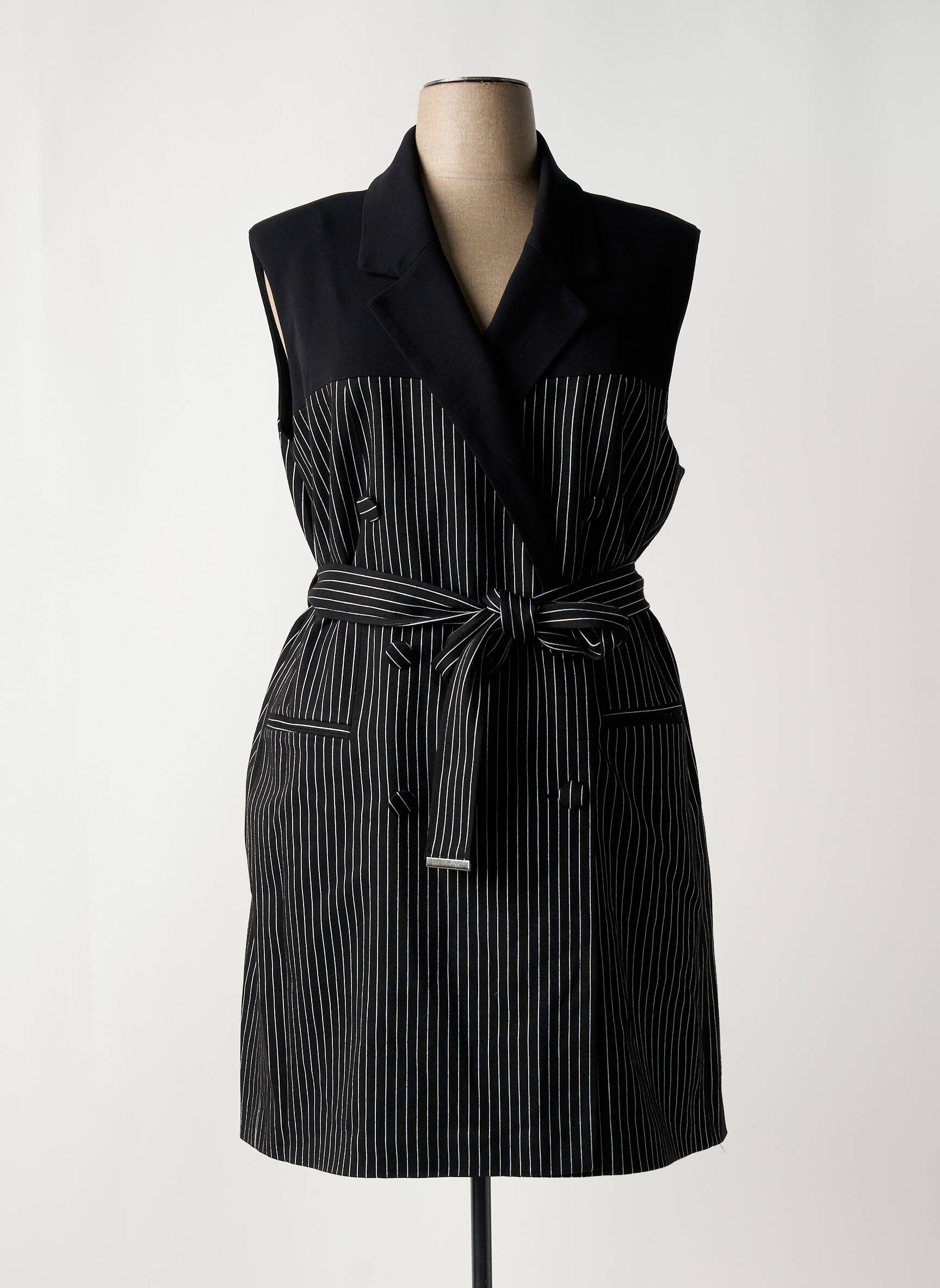 Profitez d’une véritable affaire avec ce manteau long sans manches JEAN MARC PHILIPPE pour femme, parfait pour celles qui aiment le style chic à petit prix. Son design élégant associe un haut uni structuré et un bas à fines rayures verticales, tandis que la ceinture assortie vient sublimer la silhouette pour un look raffiné tout en modernité. Les poches plaquées apportent une touche pratique et tendance, idéal pour compléter toutes vos tenues sans vous ruiner.