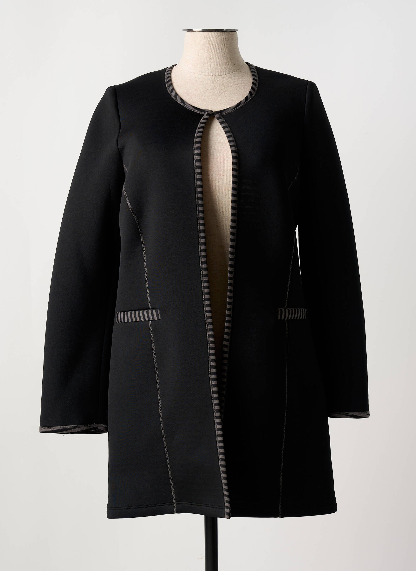 Profitez d'une véritable affaire avec ce manteau long pour femme de la marque MERI & ESCA, une pièce élégante au design épuré qui allie raffinement et modernité à prix irrésistible. Sa coupe droite rehaussée de surpiqûres contrastantes et son ouverture sans fermeture offrent une allure contemporaine, tandis que les détails rayés au niveau des bordures apportent une note graphique tendance, idéale pour sublimer toutes vos tenues tout en réalisant de belles économies.