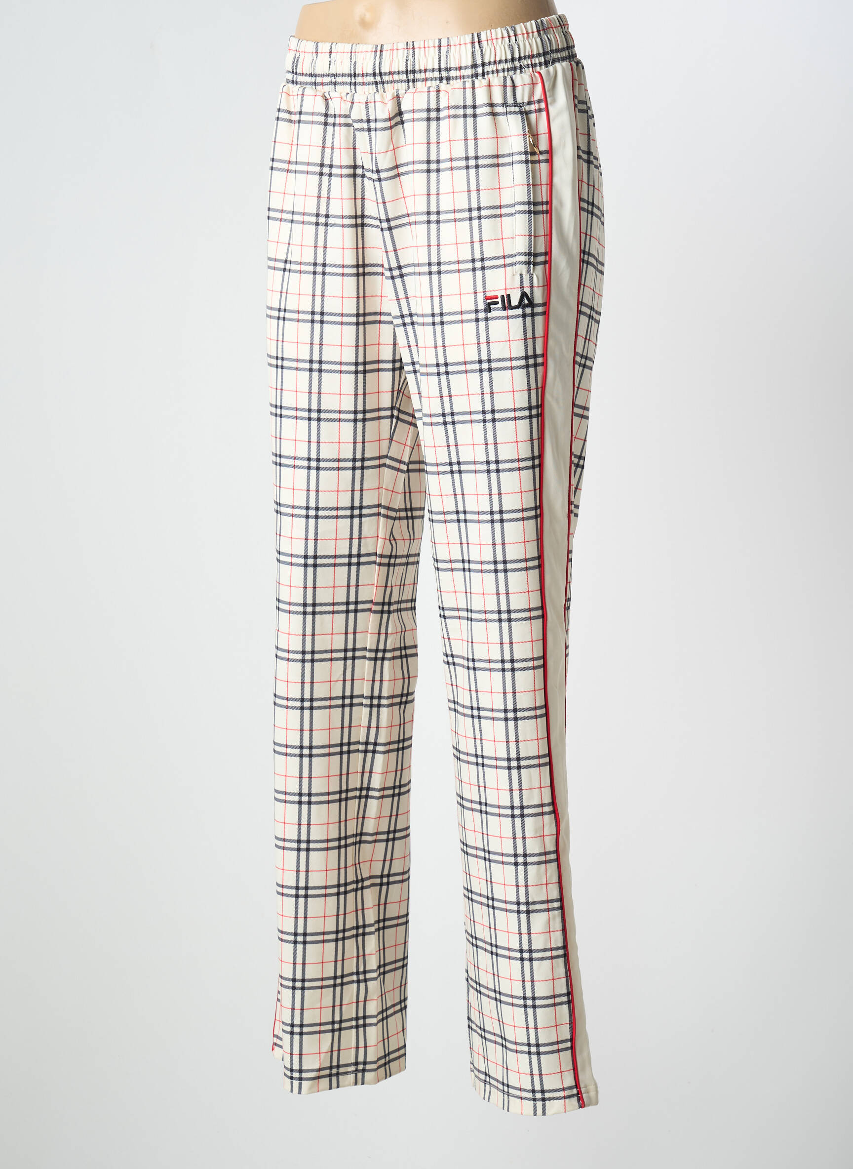 Profitez d’un super bon plan avec ce jogging pour femme signé FILA au style tendance à prix tout doux, parfait pour celles qui veulent allier confort et économies sans sacrifier le look. Ce pantalon arbore un motif à carreaux élégant et moderne, rehaussé de fines lignes contrastantes et du logo discret brodé sur la cuisse, tandis que sa coupe droite et sa taille élastiquée offrent une allure décontractée et facile à porter en toutes circonstances. Idéal pour vos journées cocooning ou pour apporter une touche sportswear chic à votre quotidien, ce modèle vous permet de rester à la pointe de la mode à petit prix.