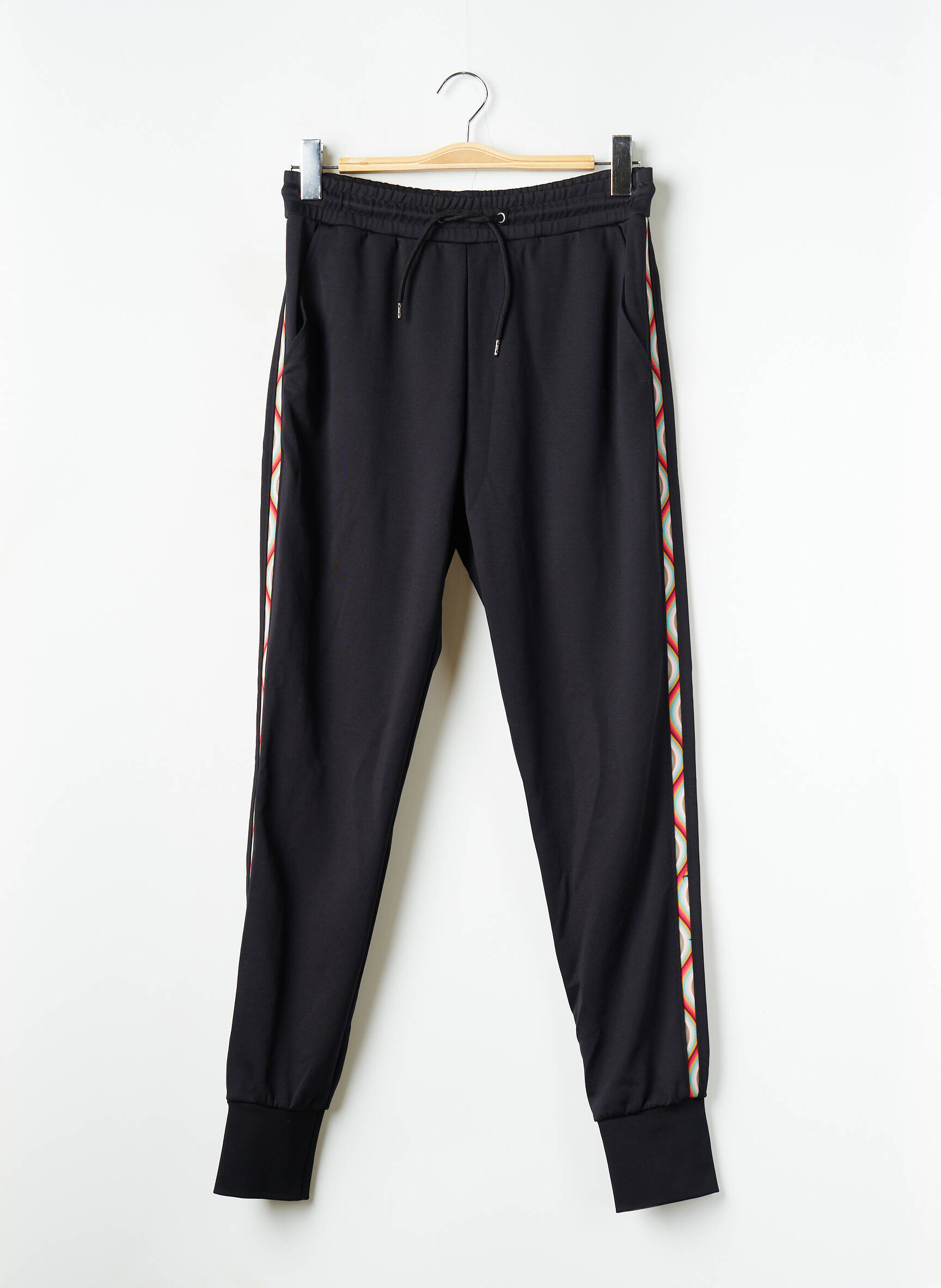 Profitez d’un vrai bon plan avec ce jogging pour femme signé PAUL SMITH, une pièce tendance à prix exceptionnel pour un style casual sans compromis sur l’élégance. Son design noir sobre est dynamisé par une bande latérale colorée à motif signature, tandis que sa taille élastiquée et ses chevilles resserrées assurent un confort parfait pour vos journées actives ou vos moments de détente. Saisissez cette occasion unique d’ajouter une touche de chic à votre dressing sans vous ruiner.