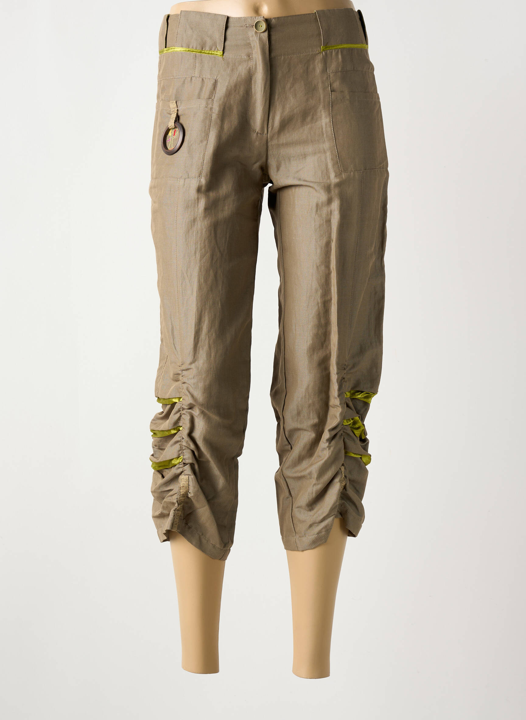 Profitez d’un vrai bon plan avec ce pantacourt signé Aventures des Toiles, parfait pour allier style et petits prix. Sa coupe moderne se distingue par ses détails froncés sur le bas de jambe et l’originalité de ses petites touches colorées jaunes contrastantes, ainsi que par ses poches zippées et sa breloque fantaisie à la taille qui ajoutent une note de fantaisie à votre look. Ce pantacourt est une pièce idéale pour donner du caractère à votre garde-robe sans vous ruiner.