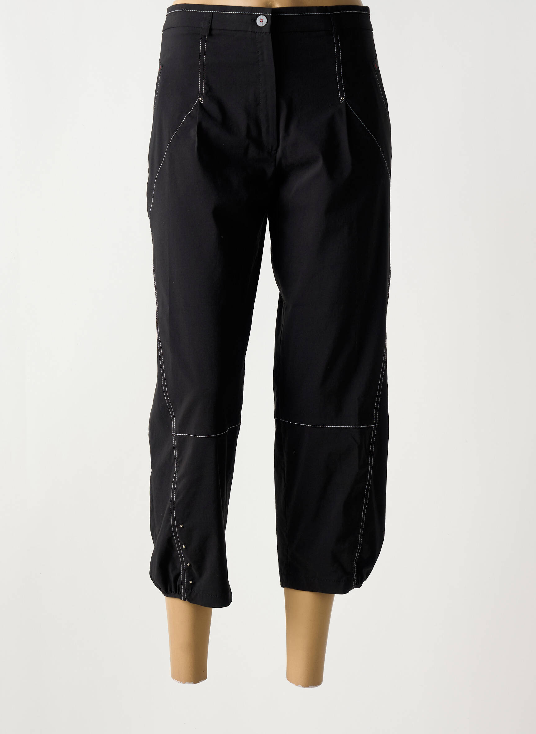 Craquez pour ce pantacourt CHRISTINE LAURE pour femme qui allie élégance et praticité à prix mini, idéal pour faire de bonnes affaires sans compromis sur le style. Sa coupe moderne légèrement ample s’accompagne de surpiqûres contrastées qui apportent du relief et un effet visuel raffiné, tandis que le bas resserré avec petits boutons décoratifs ajoute une touche originale et féminine. Profitez d’un basique confortable et polyvalent, parfait pour renouveler votre garde-robe à petit prix.