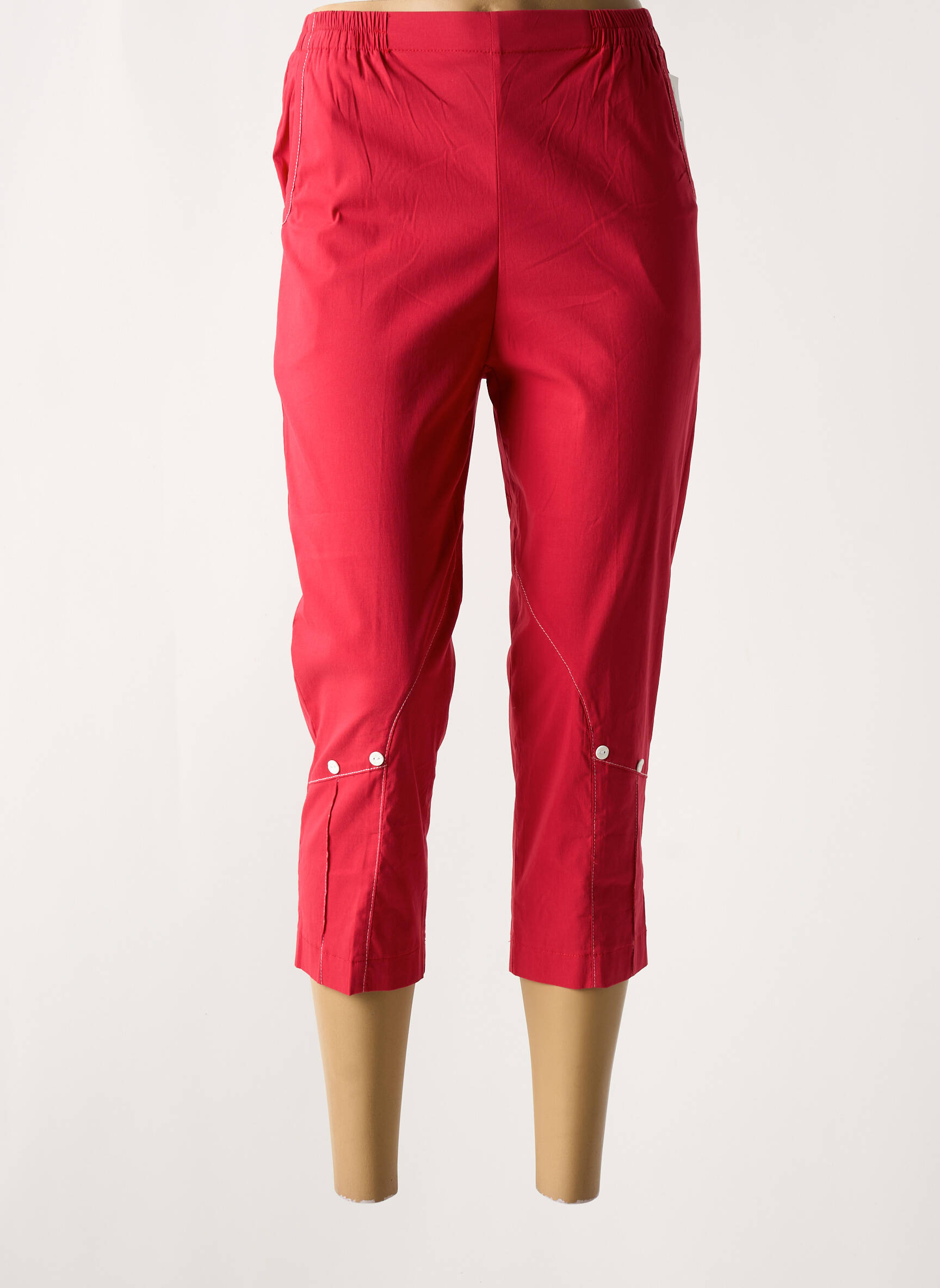 Craquez pour ce pantacourt femme de la marque GEVANA, un véritable bon plan pour apporter une touche de couleur dynamique à votre dressing sans vous ruiner. Sa coupe moderne et décontractée, associée à une teinte rouge vive très tendance, en fait une pièce idéale pour les beaux jours, tandis que sa taille élastiquée garantit un confort optimal au quotidien. Des petits boutons décoratifs et des coutures originales viennent sublimer et moderniser le bas du vêtement, faisant de ce pantacourt un choix économique et plein de style à ne pas laisser passer.