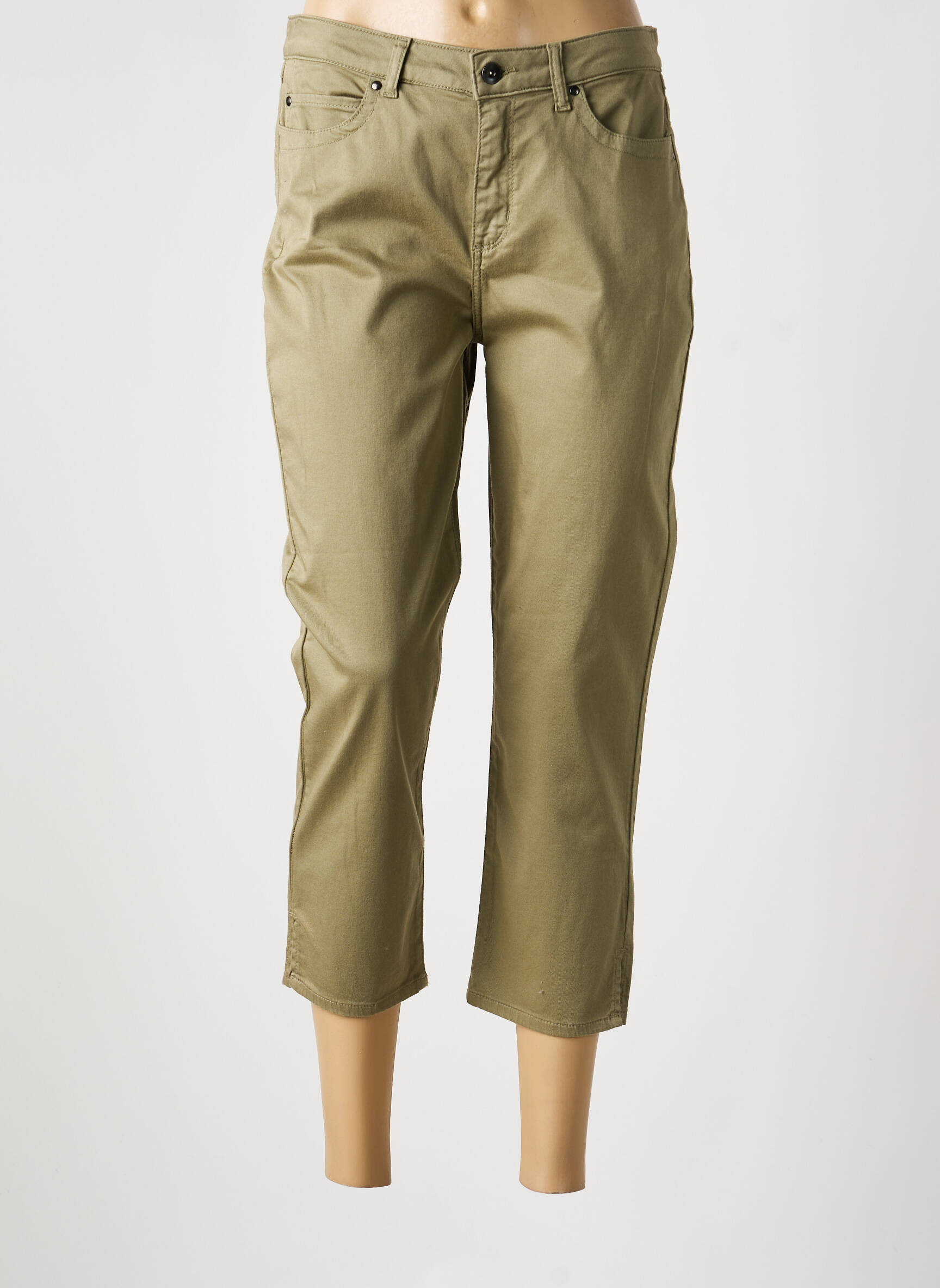 Profitez d'un bon plan avec ce pantacourt pour femme signé GUY DUBOUIS, parfait pour une allure décontractée et tendance à petit prix. Sa coupe légèrement ajustée et sa longueur mi-mollet offrent un style moderne et confortable, tandis que sa teinte kaki polyvalente se marie facilement avec toutes vos tenues estivales. Idéal pour les journées ensoleillées, ce pantacourt réunit élégance discrète et praticité sans vous ruiner.