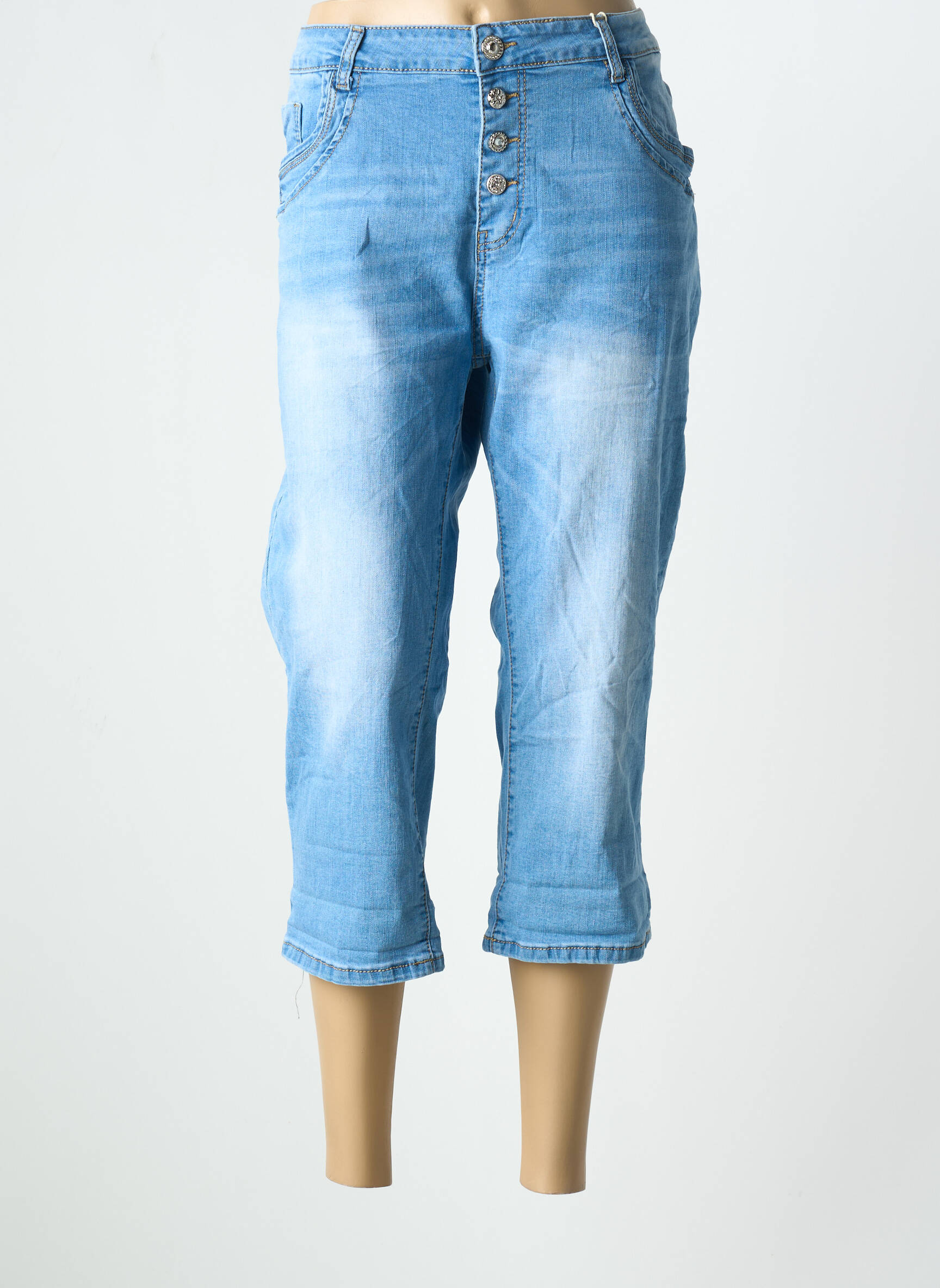 Ce pantacourt pour femme de la marque KAROSTAR est le bon plan parfait pour profiter de l’effet tendance du denim tout en faisant des économies. Sa coupe moderne à jambe légèrement évasée dévoile subtilement la cheville et son boutonnière apparente apporte une touche originale et actuelle. Léger et facile à porter avec n'importe quel haut, il se distingue par ses finitions soignées et son effet légèrement délavé, pour un look frais et décontracté à petit prix. C’est l’occasion idéale d’adopter un style casual sans vous ruiner.