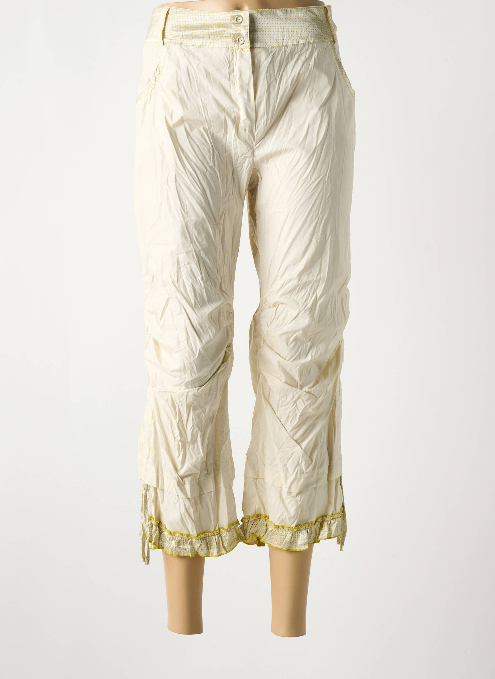 Profitez d’un look tendance à prix mini avec ce pantacourt pour femme signé POUSSIERE D'ETOLE, qui allie style et légèreté grâce à sa coupe ample et fluide, tandis que les finitions plissées et le détail brodé doré à la base apportent une touche d’originalité à ce basique revisité, idéal pour composer une tenue estivale sans vous ruiner.