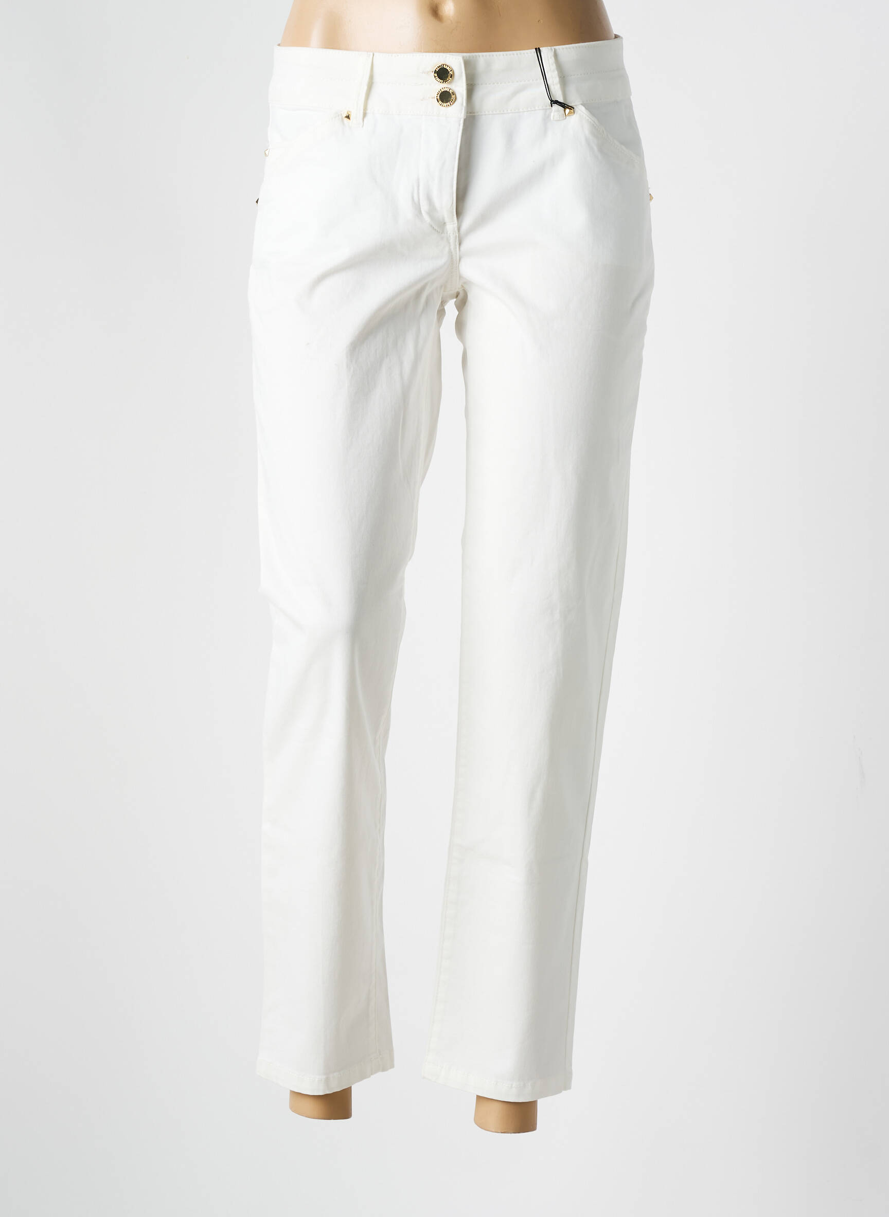 Profitez d’un bon plan exceptionnel avec ce pantalon 7/8 Betty Barclay, une pièce chic parfaite pour mettre en valeur votre allure sans vous ruiner. Sa coupe moderne, légèrement raccourcie, habille vos jambes tout en finesse et offre un tombé élégant, tandis que la teinte blanche lumineuse met en valeur la silhouette et s’associe facilement à toutes vos envies de style. Les détails de la double fermeture à boutons dorés et les poches sur le devant apportent une touche de sophistication discrète à ce pantalon facile à porter au quotidien comme pour les occasions plus habillées. Succombez à ce modèle tendance à prix tout doux pour renouveler votre dressing à petit prix.