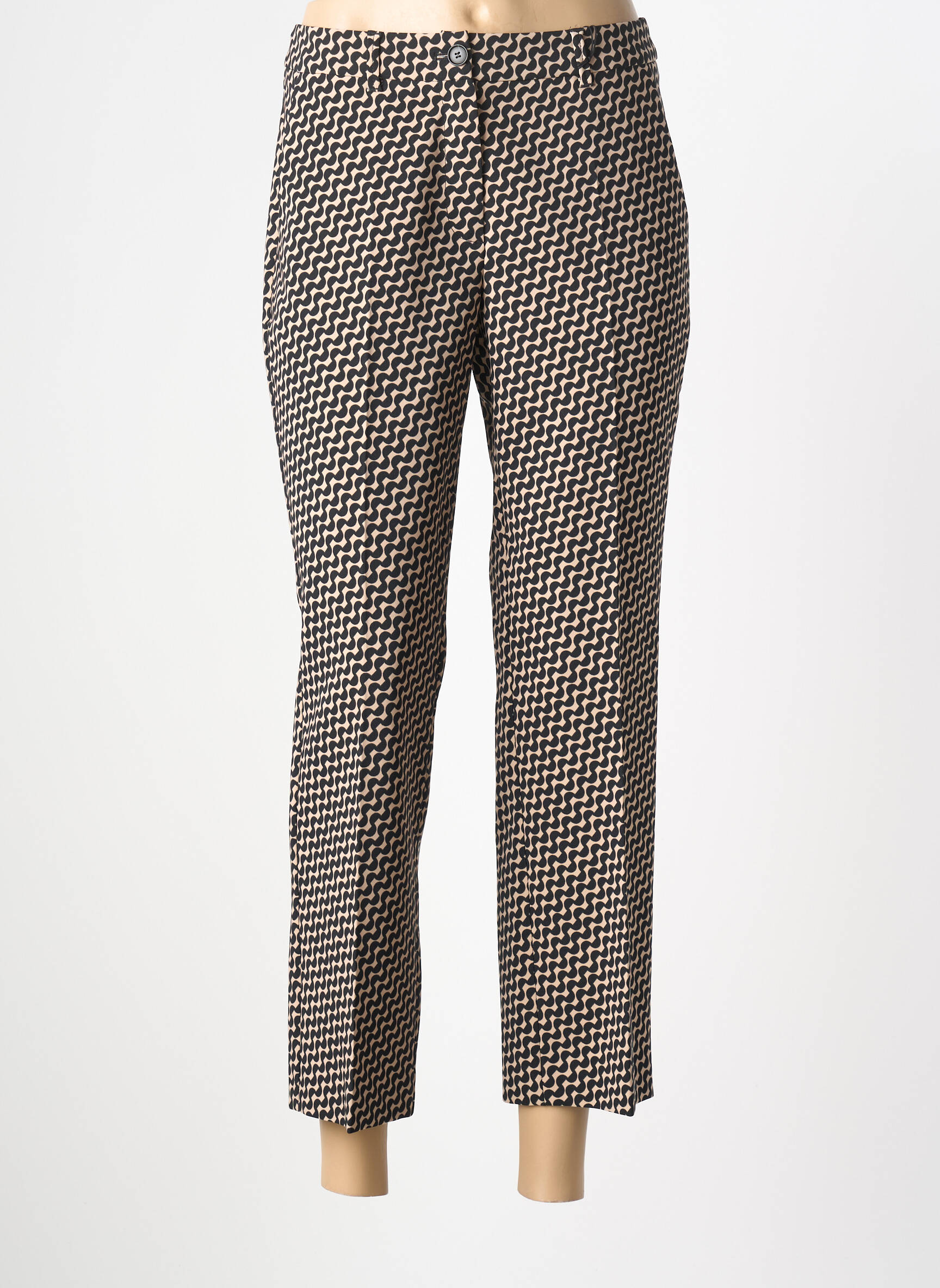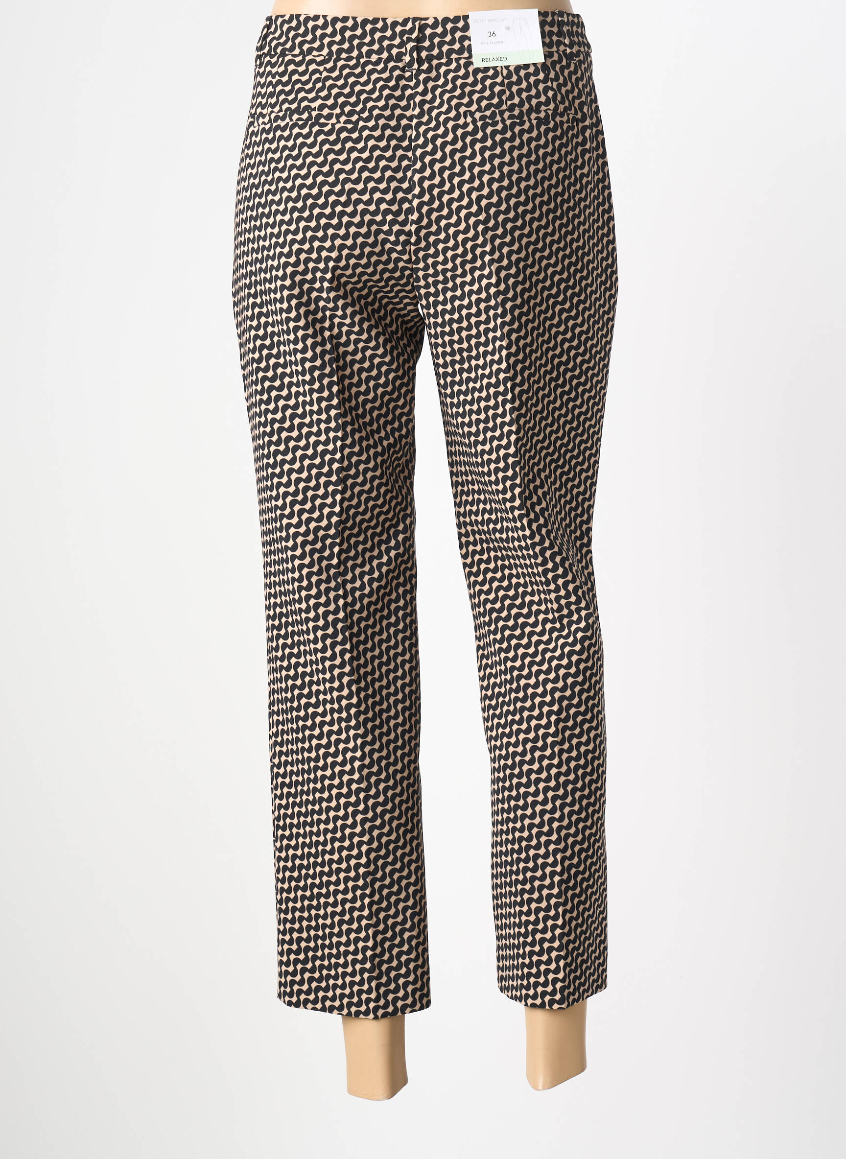Profitez d’un bon plan mode avec ce pantalon 7/8 pour femme signé BETTY BARCLAY, proposé à prix mini sur notre boutique de déstockage multi-marque. Ce modèle élégant se distingue par son motif graphique noir et blanc qui apporte une touche moderne et tendance à vos tenues du quotidien. Sa coupe droite, légèrement raccourcie, met en valeur la silhouette sans effort et s’associe facilement avec toutes vos envies. C’est l’occasion parfaite de renouveler votre garde-robe à petit prix tout en misant sur le style et le confort d’une grande marque.