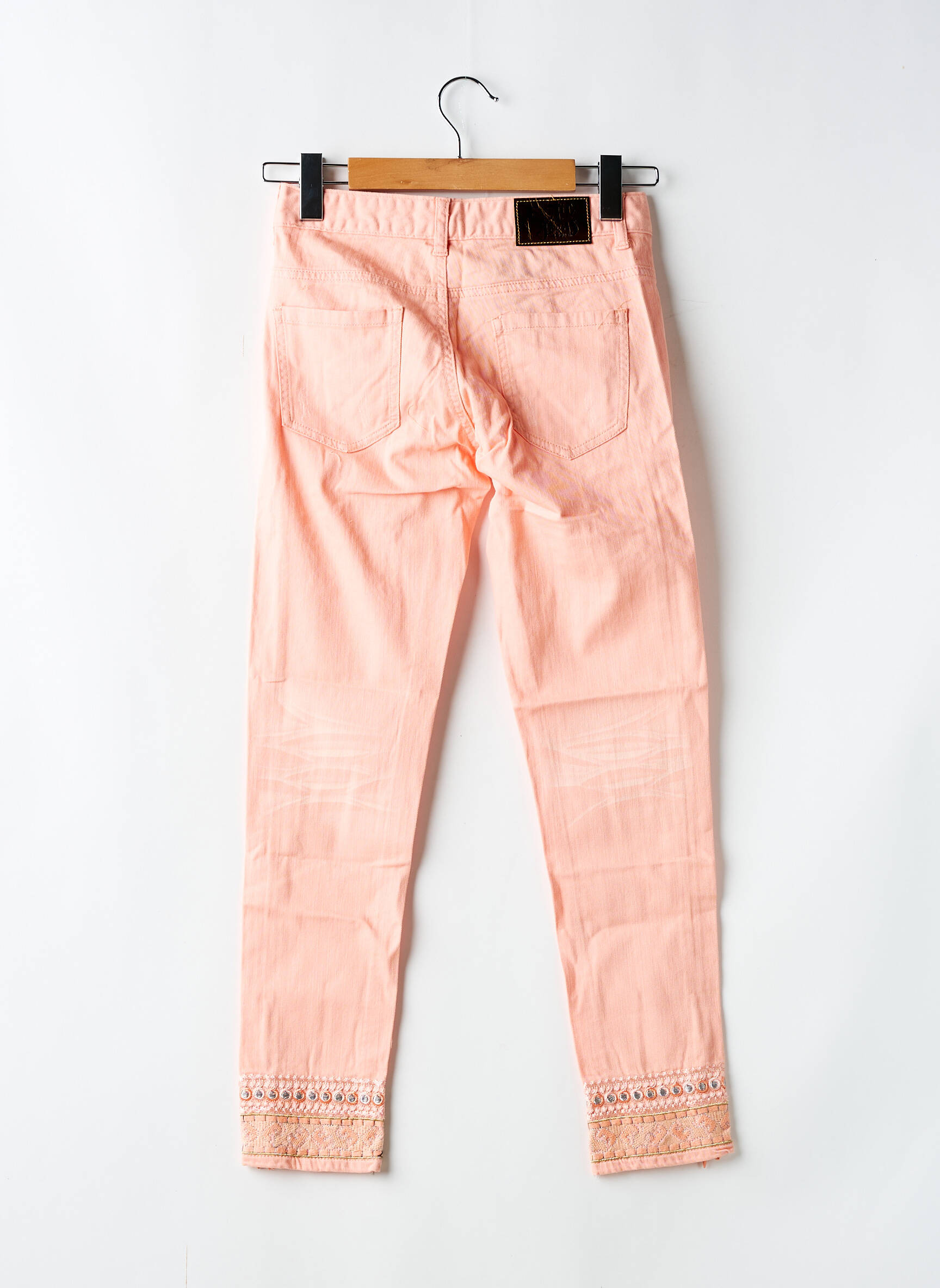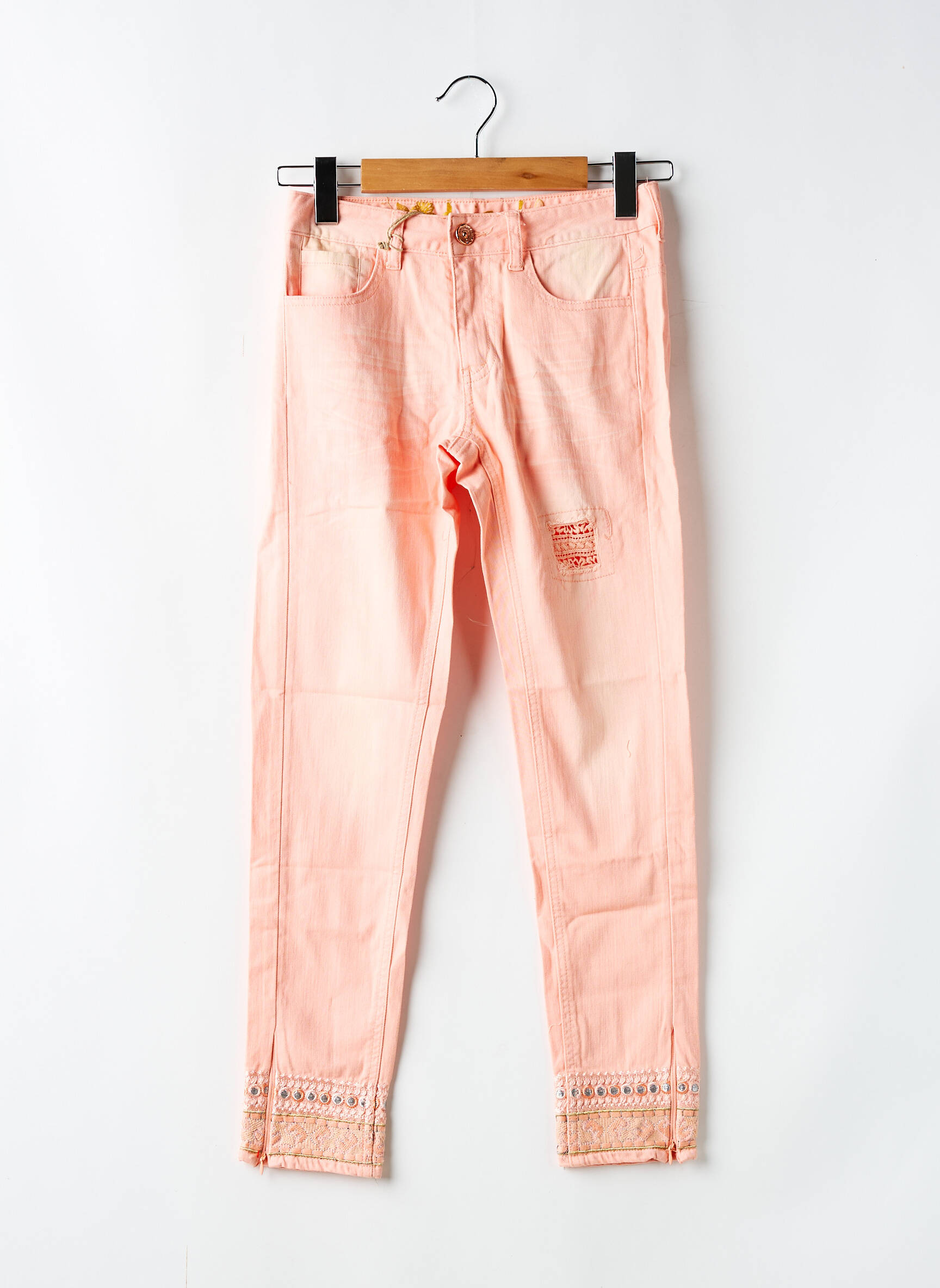 Offrez-vous une touche d’originalité à petit prix avec ce pantalon 7/8 Desigual pour femme, une pièce tendance à prix réduit idéale pour renouveler votre dressing sans vous ruiner. Sa teinte saumon douce et lumineuse s’associe facilement à toutes vos tenues de saison, tandis que la coupe ajustée flatte la silhouette. On aime tout particulièrement le détail brodé et ajouré en bas de jambe, signature de la marque, ainsi que les discrètes zones effet usé pour un rendu casual et moderne. Ce pantalon vous permet de profiter du style Desigual avec une belle économie, parfait pour se faire plaisir sans compromis.