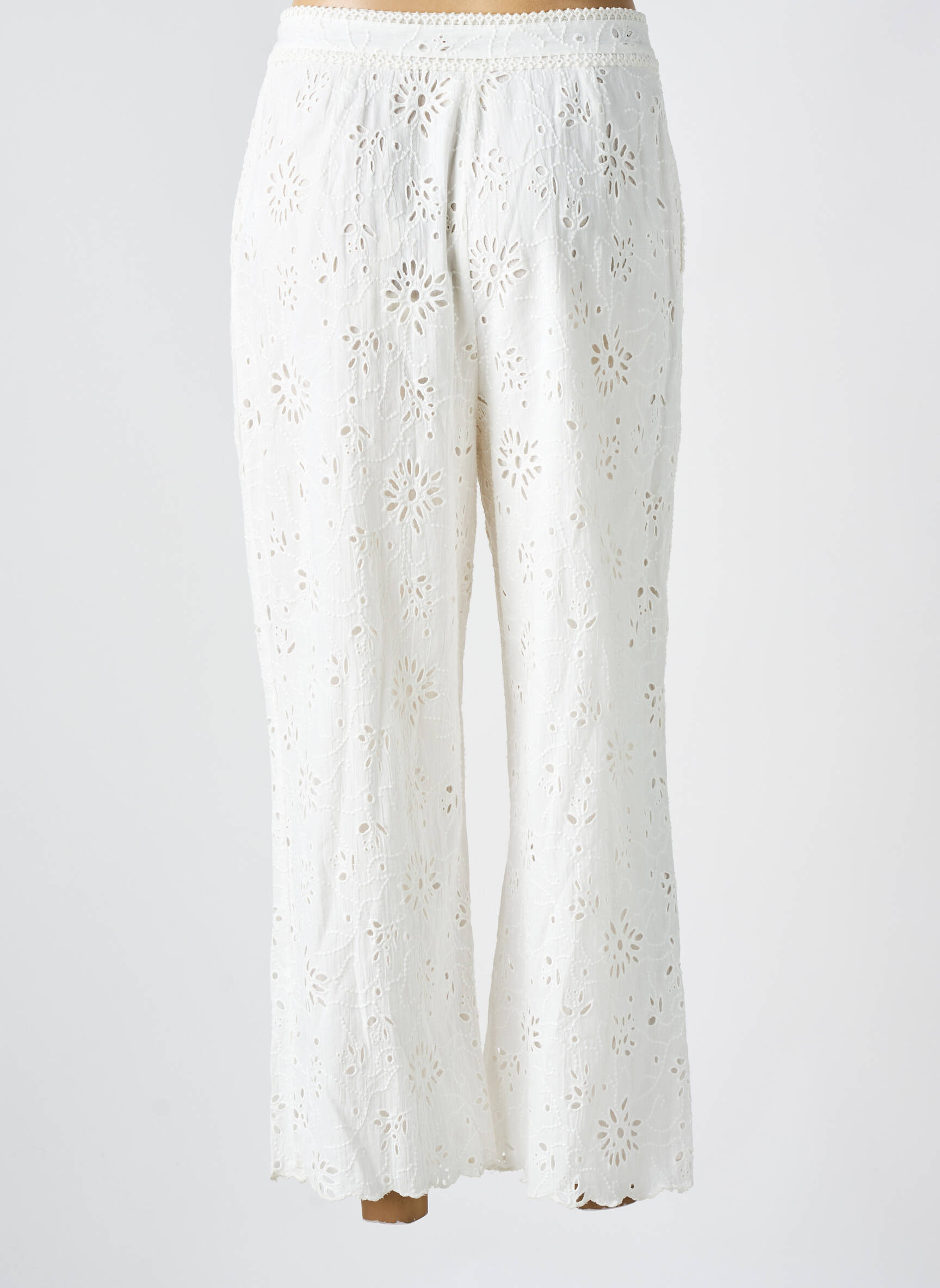Craquez pour ce pantalon 7/8 signé DIEGA à prix tout doux, l'occasion idéale de vous offrir une pièce de créateur sans vous ruiner. Son élégante broderie ajourée apporte une touche de fraîcheur et de raffinement à votre look, tandis que sa coupe légèrement évasée offre une silhouette moderne et confortable. Ce pantalon blanc, féminin et lumineux, s’adapte à toutes vos envies de style, aussi bien pour une journée estivale que pour une soirée chic. Une opportunité à ne pas manquer pour compléter votre dressing avec chic, sans compromis sur le prix.