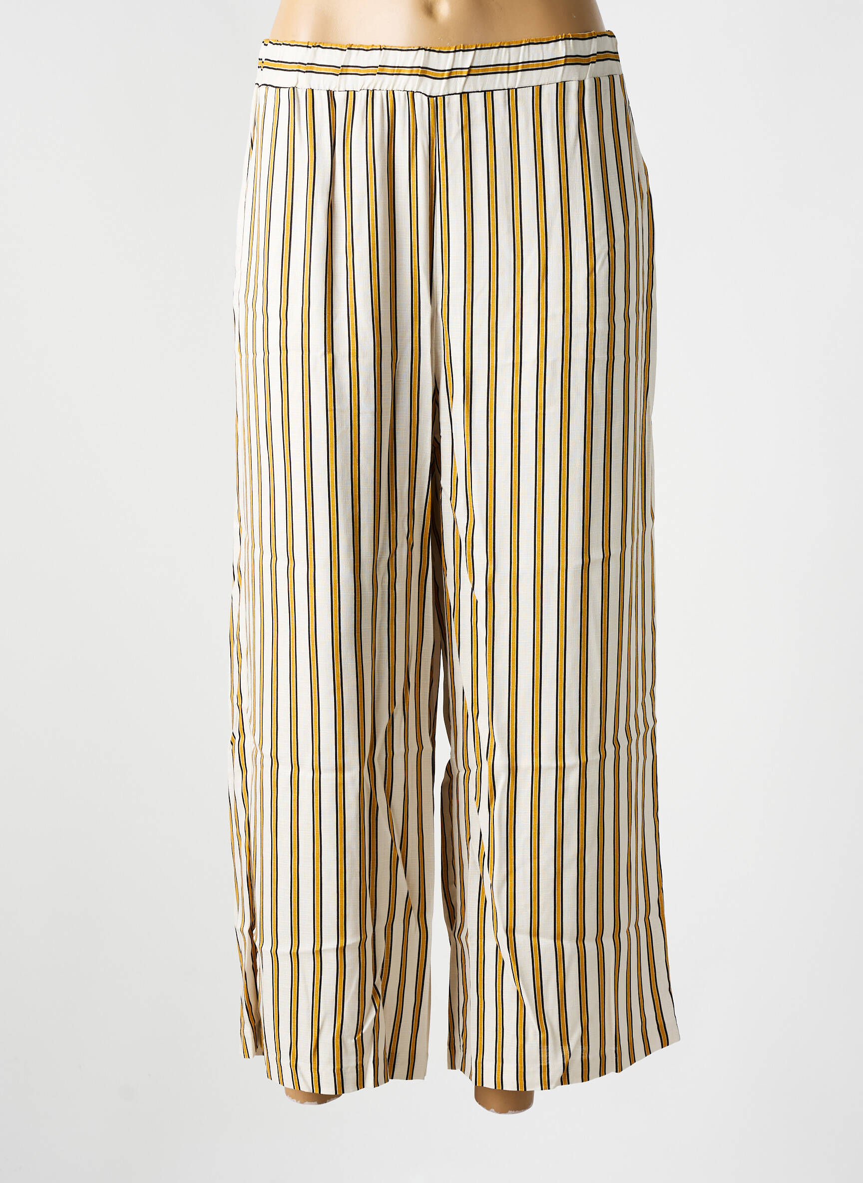 Offrez-vous la qualité ELEONORA AMADEI à prix mini avec ce pantalon 7/8 pour femme, dont la coupe ample et la taille élastiquée garantissent un confort optimal au quotidien. Les rayures verticales dorées et blanches apportent une touche de modernité et d’élégance, idéale pour créer un look chic sans se ruiner. Profitez d’une pièce tendance et facile à assortir, parfaite pour réaliser une belle économie tout en renouvelant votre garde-robe avec style.