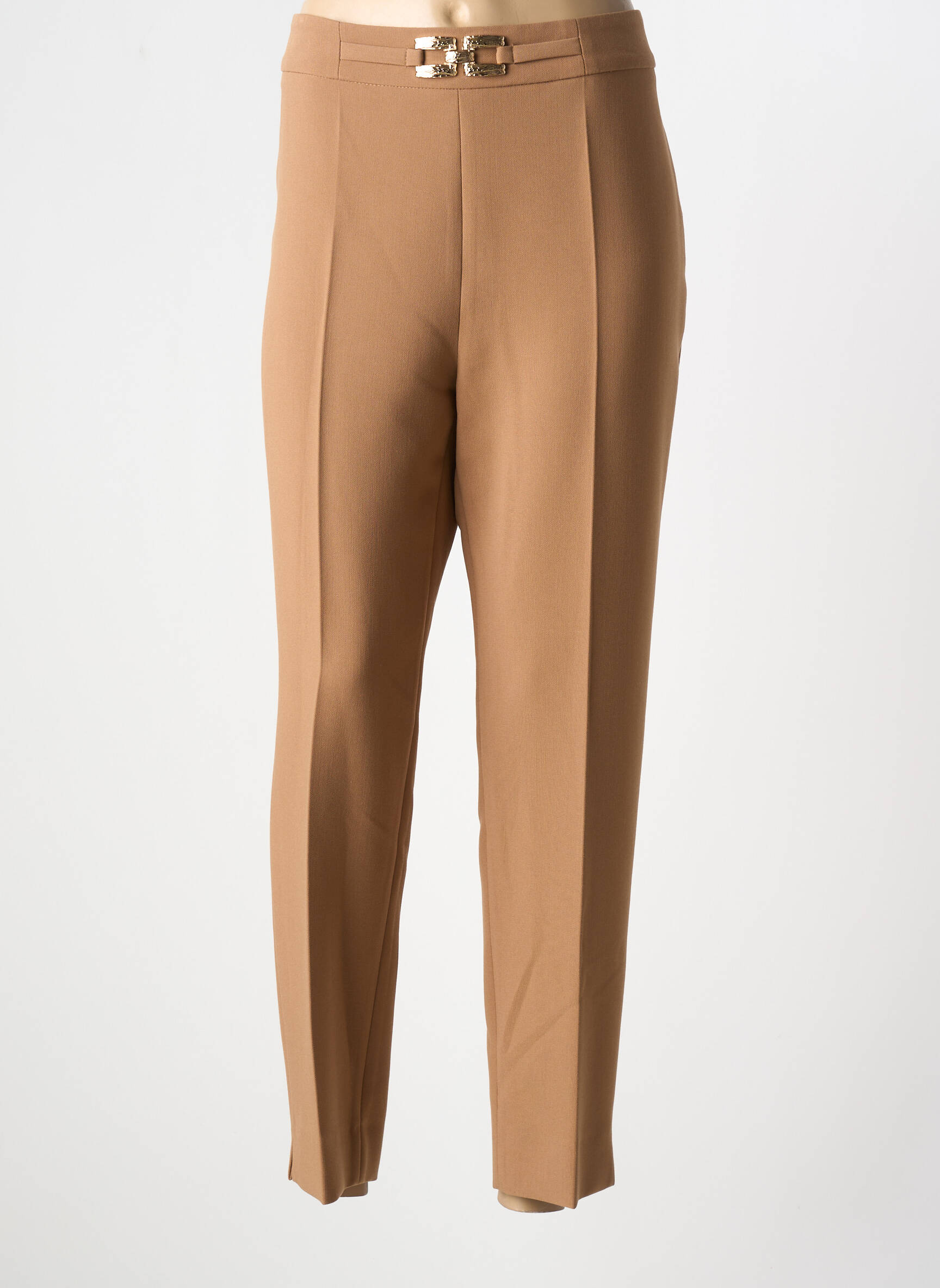Craquez pour ce pantalon 7/8 de la marque ESTEL COLLECTION, l’occasion idéale pour profiter d’un style chic à petit prix. Sa coupe élégante et moderne met en valeur la silhouette tout en offrant un confort au quotidien, tandis que sa teinte camel intemporelle s’accorde facilement avec toutes vos envies mode. Ce pantalon, agrémenté d’une fine ceinture décorative dorée, apporte une touche sophistiquée sans vous ruiner. C’est le bon plan parfait pour renouveler votre dressing sans compromis sur la qualité ou le style.