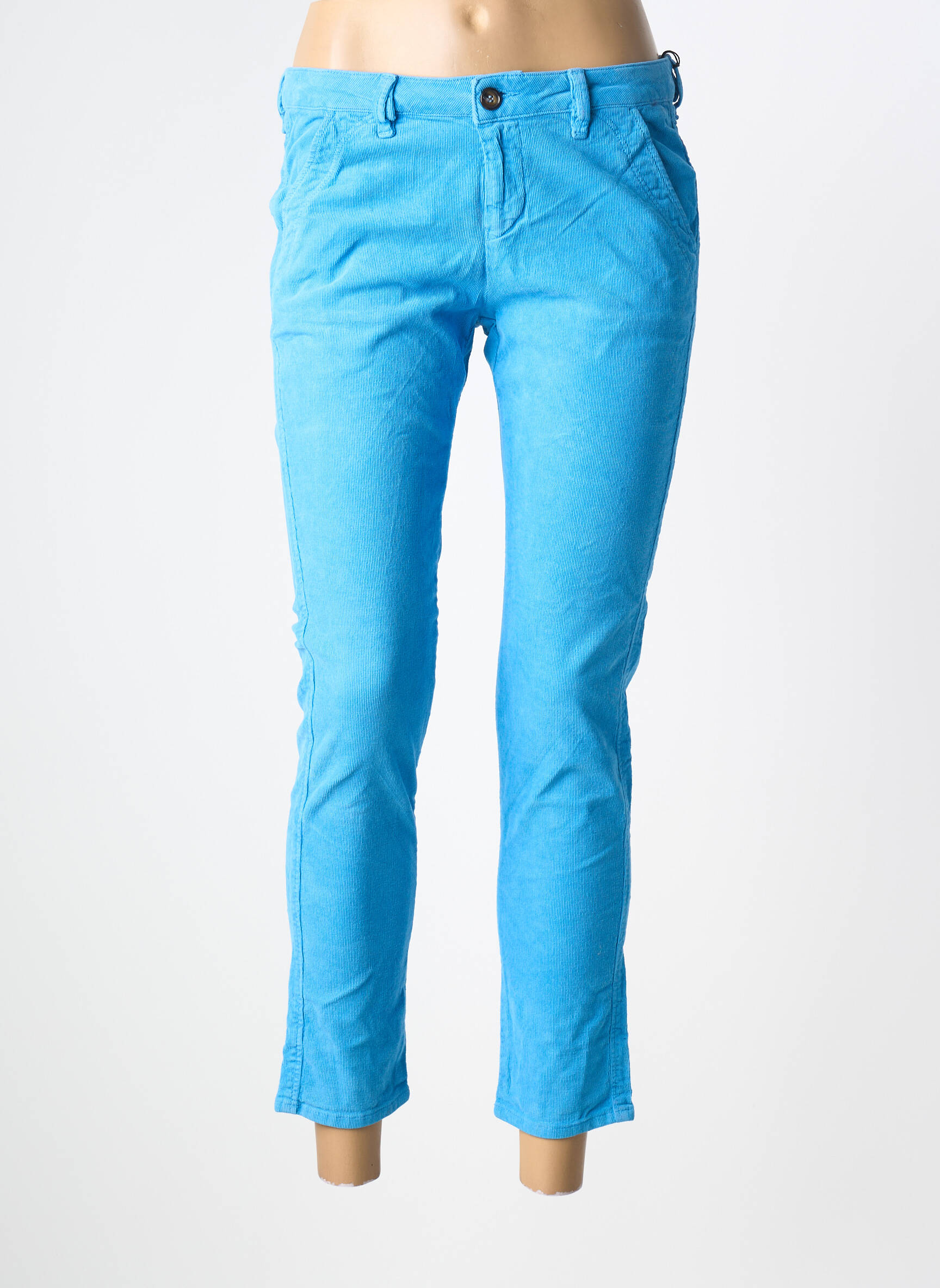 Ce pantalon 7/8 se marie à merveille avec un t-shirt blanc pour un esprit casual, ou avec une blouse légère pour une allure plus sophistiquée. On peut facilement compléter le look avec une veste en jean ou un blazer selon les envies, et choisir un sac coloré ou des accessoires dorés pour rehausser l’ensemble. Les baskets blanches comme les sandales nude s’accordent avec ce bleu vif, laissant place à un style actuel et frais en toutes circonstances.