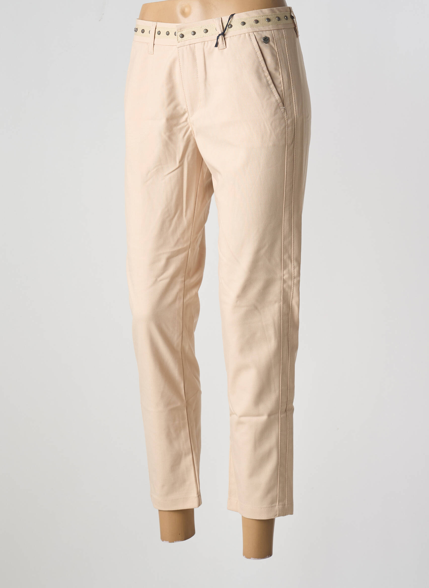 Profitez d’un super bon plan avec ce pantalon 7/8 de la marque FREEMAN T.PORTER, idéal pour moderniser votre garde-robe sans vous ruiner. Avec sa coupe élégamment ajustée et sa teinte claire facile à associer, il est rehaussé d’une ceinture intégrée à œillets pour une touche tendance. Le détail des poches et la finition soignée en font un choix aussi chic que confortable, parfait pour un look féminin à petit prix.