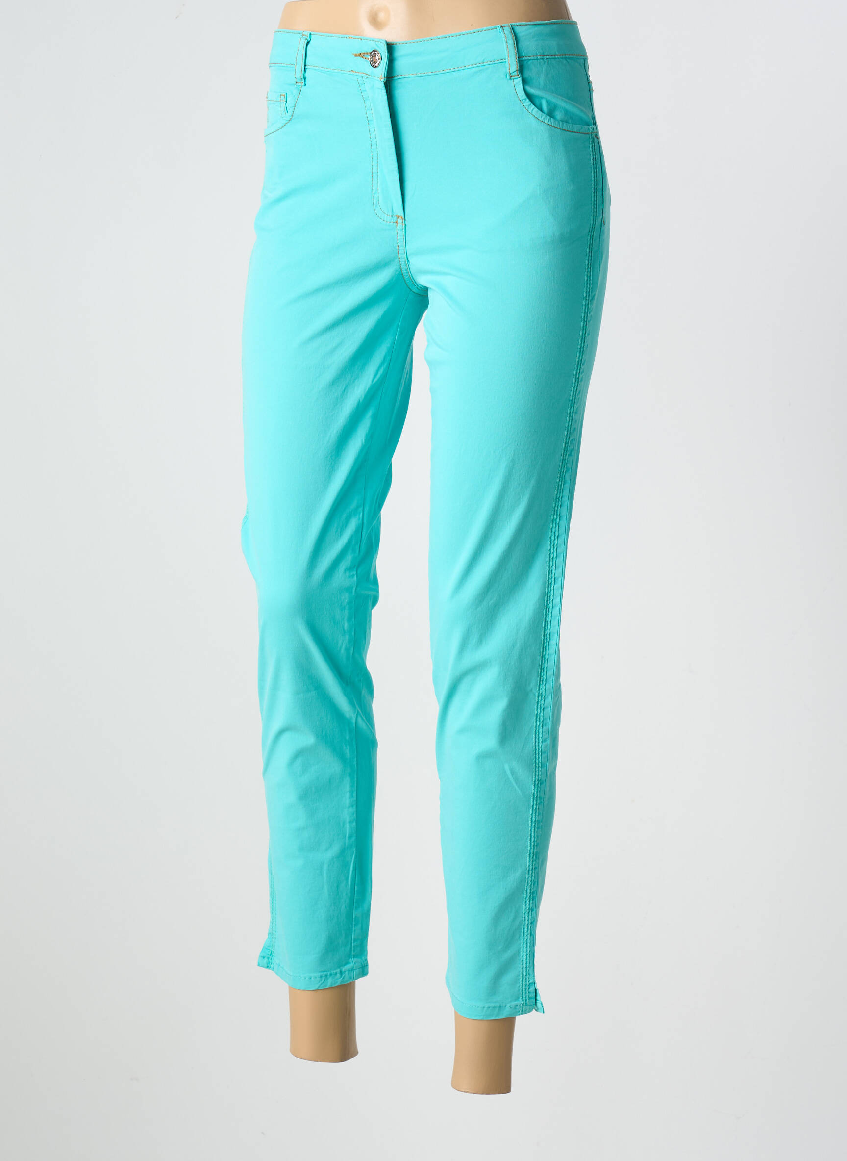 Craquez pour ce pantalon 7/8 de la marque FUEGO WOMAN à prix mini, parfait pour apporter une touche de fraîcheur et de modernité à votre dressing sans vous ruiner. Sa coupe actuelle et sa couleur turquoise lumineuse mettent en valeur la silhouette, tout en offrant une allure féminine et tendance idéale pour la belle saison. Ce modèle pas cher est un véritable bon plan mode à ne pas manquer, que ce soit pour vos looks décontractés ou plus élégants.