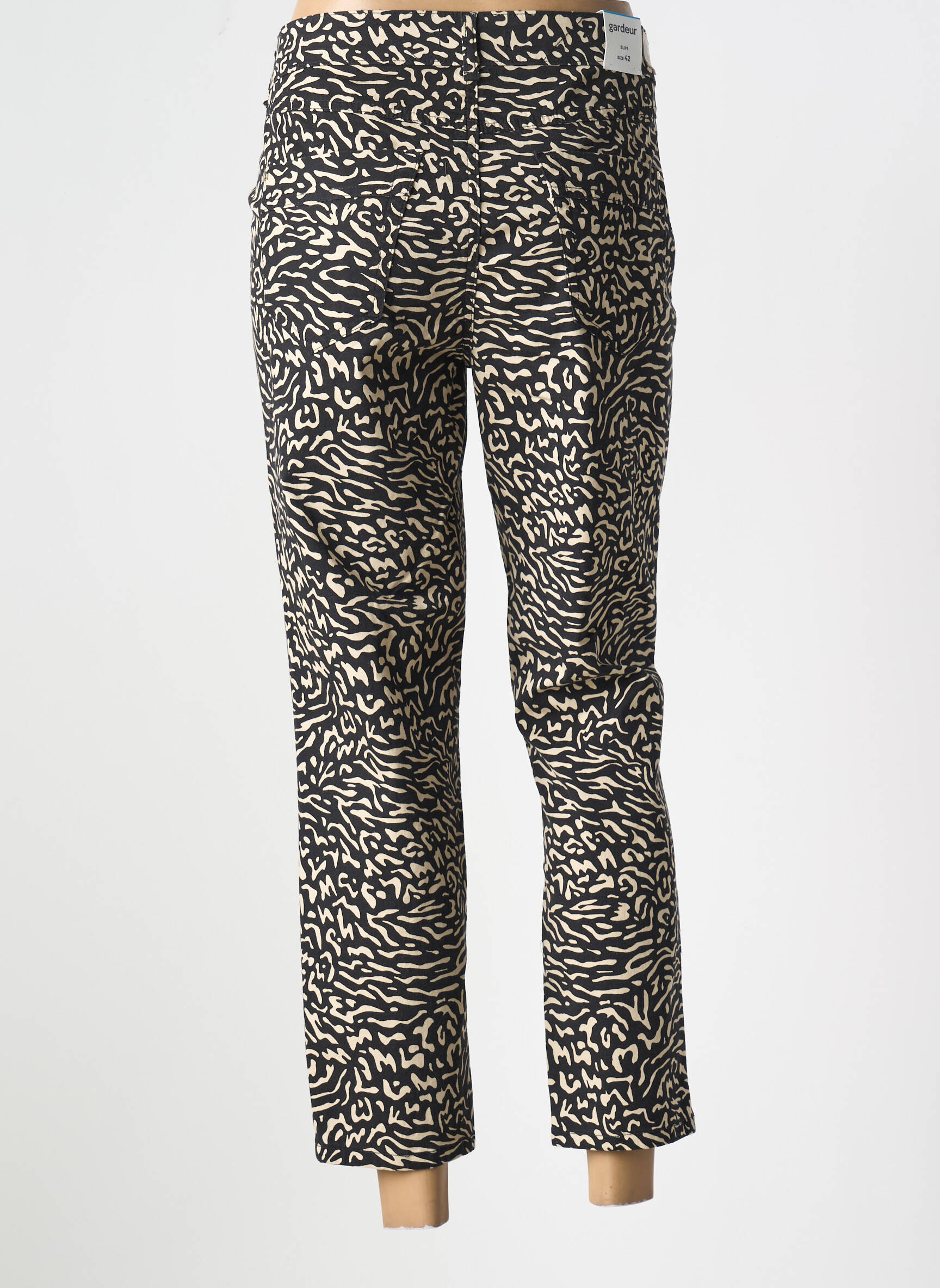 Craquez pour ce pantalon 7/8 femme de la marque Gardeur à prix mini, une véritable opportunité pour apporter une touche originale et graphique à votre garde-robe sans vous ruiner. Son imprimé noir et blanc façon animalier vous assure un look tendance et élégant, idéal autant pour dynamiser une tenue décontractée que pour sophistiquer un ensemble plus habillé, tout en profitant d’un bon plan mode incontournable.