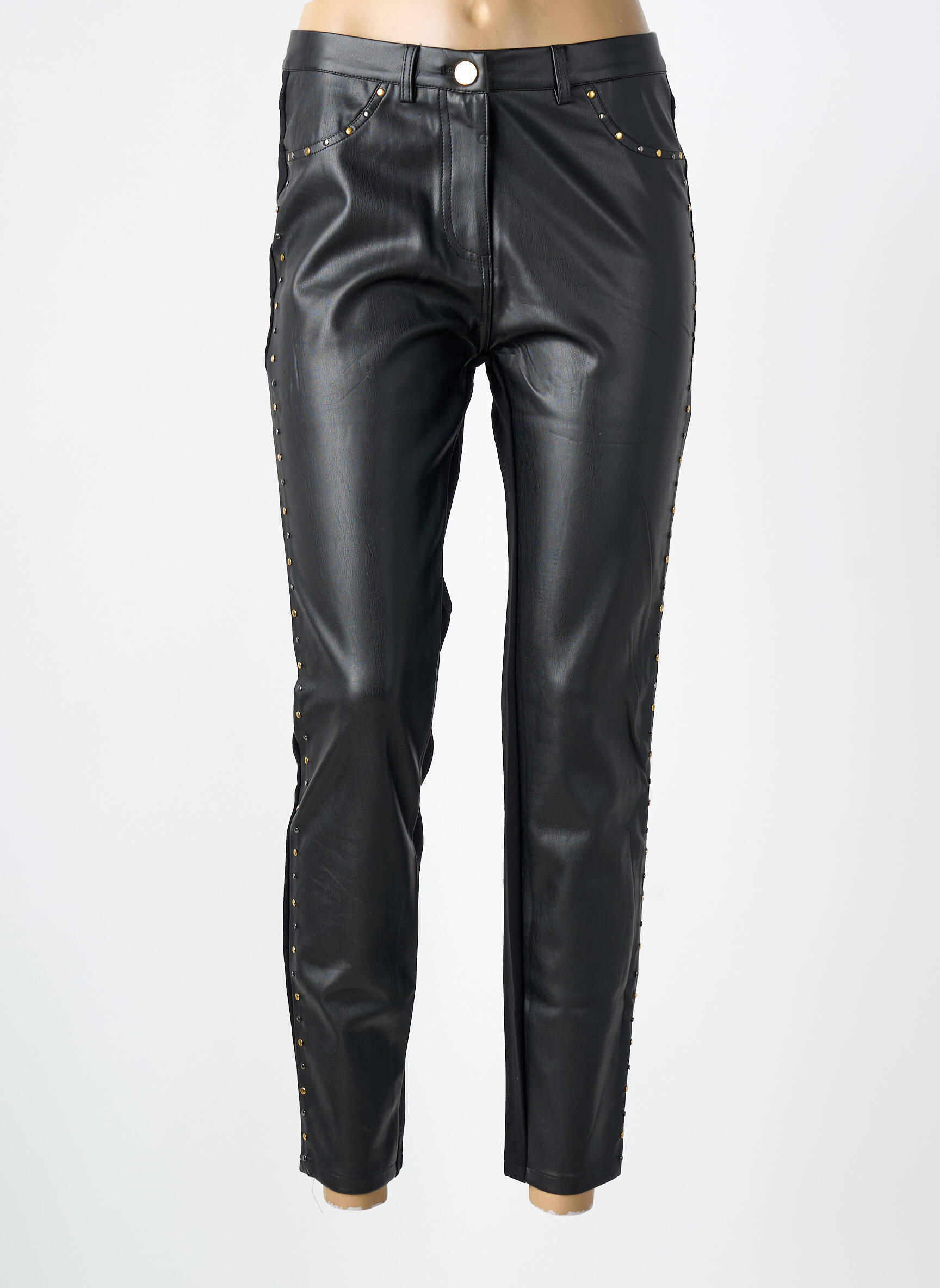 Profitez d’un super prix sur ce pantalon 7/8 signé GAUDI, un incontournable pour celles qui veulent apporter une touche rock et tendance à leur look sans se ruiner. Sa coupe ajustée et sa matière aspect cuir soulignent la silhouette, tandis que les petits clous discrets le long des coutures ajoutent une note moderne et élégante parfaite pour rehausser n’importe quelle tenue du quotidien. C’est le choix idéal pour celles qui souhaitent se faire plaisir avec une pièce forte à prix malin.