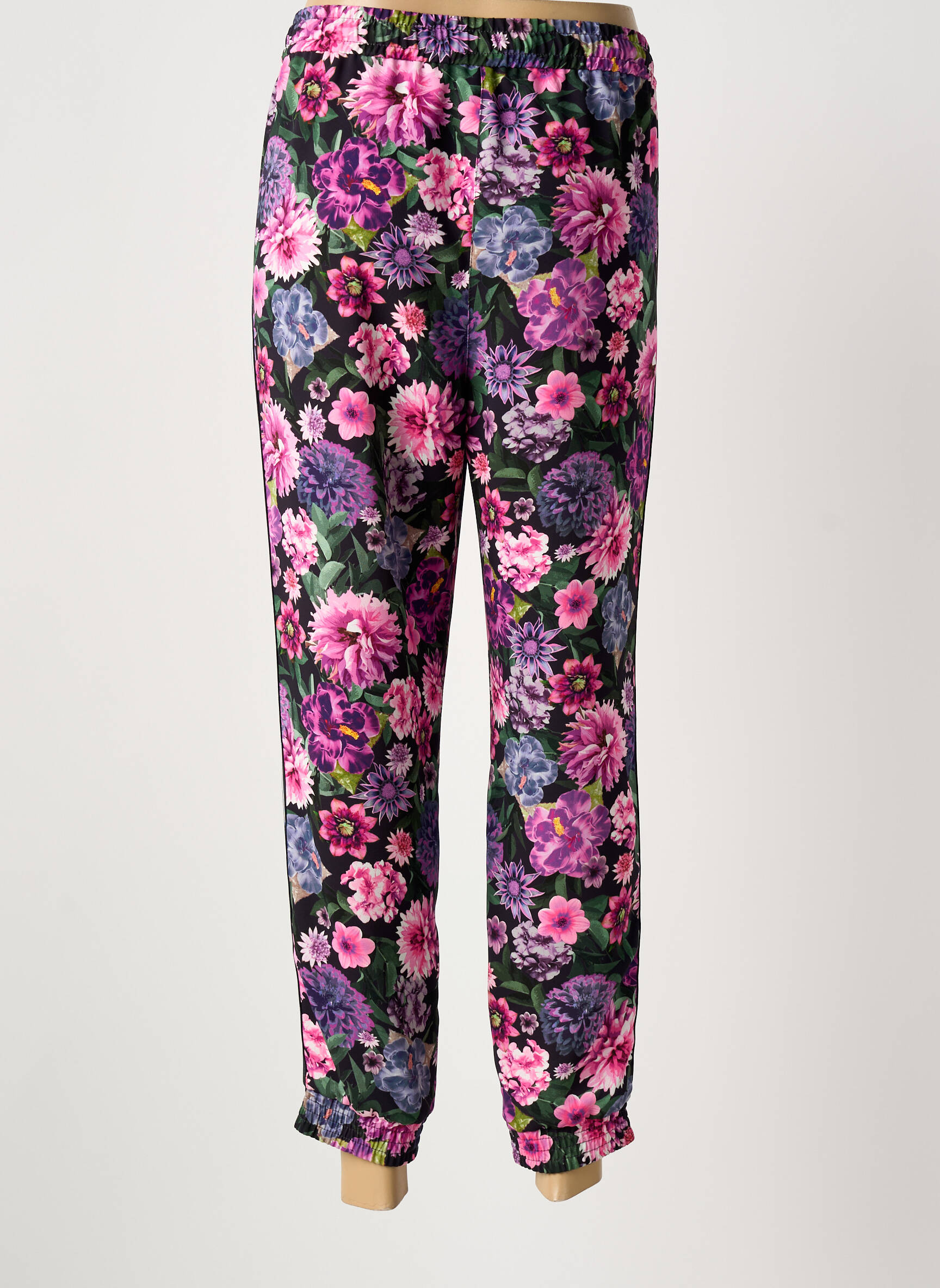 Pour adopter un look moderne et facile à vivre, ce pantalon se porte parfaitement avec un t-shirt uni ou une blouse sobre afin de laisser le motif floral s’exprimer pleinement. Il se marie aussi très bien avec une veste en denim pour une allure décontractée, ou avec un blouson en cuir pour un style urbain. Côté chaussures, optez pour des baskets blanches ou des sandales minimalistes selon la saison, et complétez l’ensemble avec un sac bandoulière et quelques accessoires dorés pour rehausser la tenue sans en faire trop.