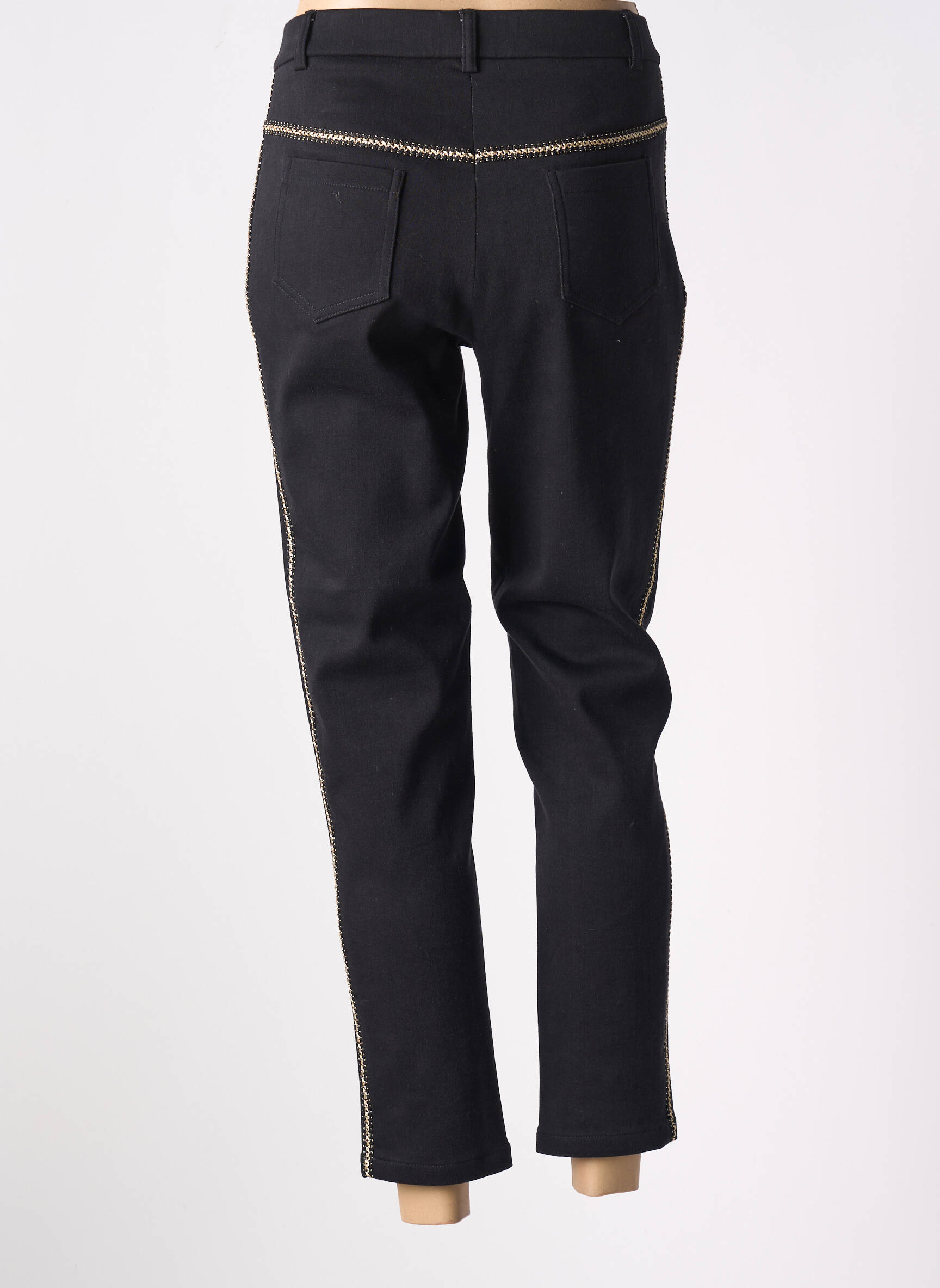 Élevez votre style avec audace grâce à ces élégants pantalons 7/8 de la marque MERI & ESCA. Leur coupe moderne souligne délicatement les jambes, tandis que les détails en or ajoutent une touche de sophistication. Fabriqués dans un tissu doux, ils allient confort et élégance parfaite pour toutes les occasions. La taille ajustée et les poches pratiques apportent une dimension fonctionnelle sans compromettre le chic. Ce modèle saura se marier avec vos ensembles quotidiens comme avec vos tenues plus habillées.