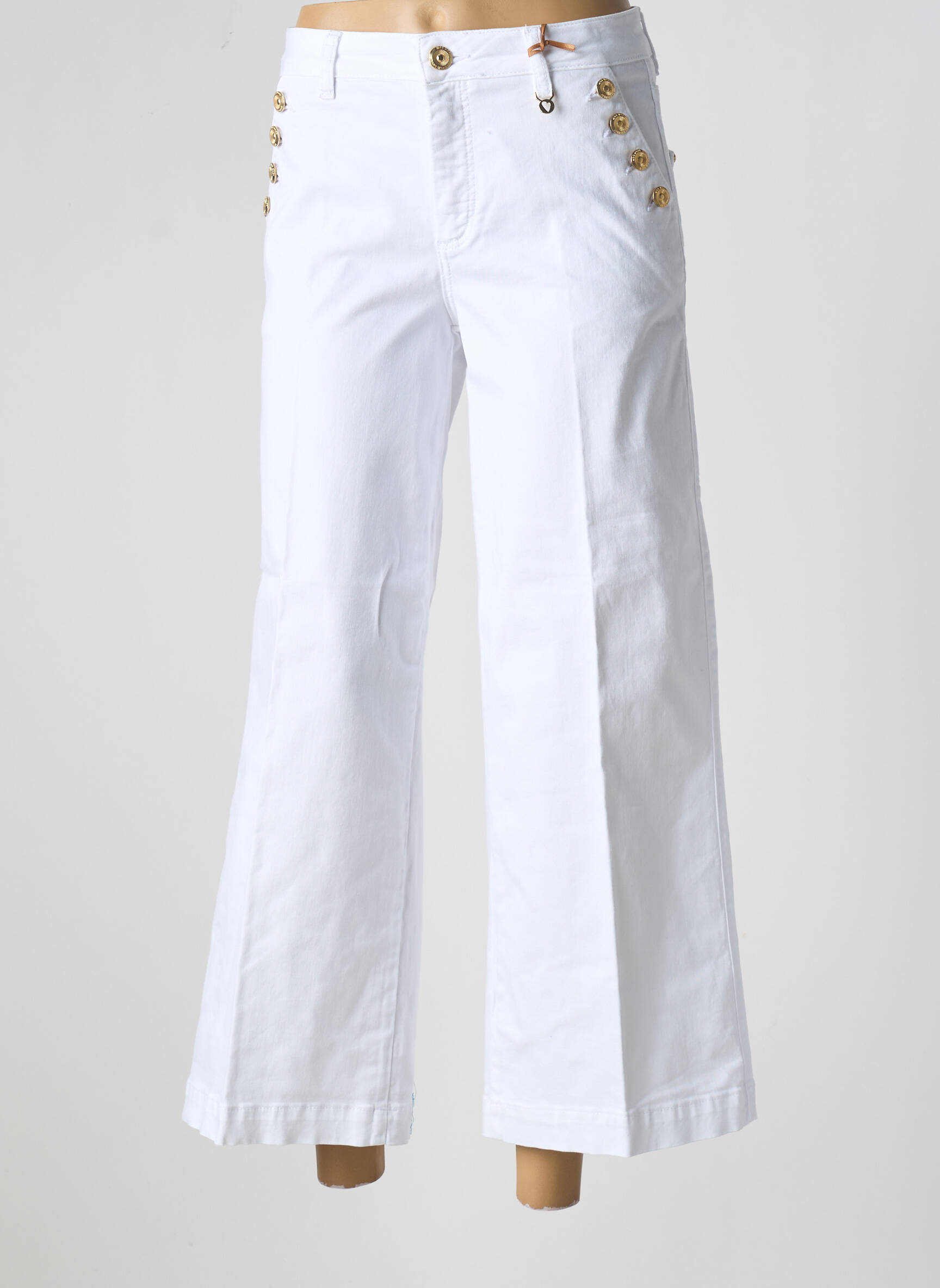 Craquez pour ce pantalon 7/8 de la marque MOS MOSH, une véritable affaire à saisir pour donner du style à votre dressing sans vous ruiner. Avec sa coupe évasée et son élégante teinte blanche, il apporte immédiatement une allure moderne et estivale. On adore le détail des boutons dorés sur les côtés qui ajoute une touche sophistiquée et originale. Ce modèle vous assure un look chic à prix mini, parfait pour réaliser de belles économies tout en restant tendance.