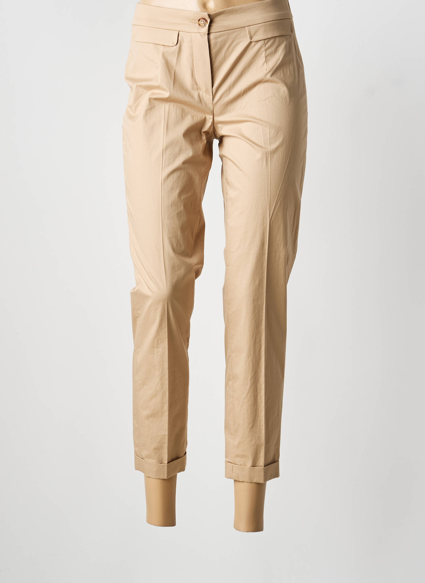 Profitez d'une opportunité à ne pas manquer avec ce pantalon 7/8 signé RIANI, une pièce élégante à prix cassé idéale pour sublimer votre garde-robe sans vous ruiner. Sa coupe raffinée met en valeur la silhouette tout en offrant une allure chic et décontractée, avec ses détails de plis marqués et ses poches à rabat qui ajoutent une touche de modernité. Sa teinte beige lumineuse s’associe facilement à toutes vos envies, faisant de ce pantalon un indispensable à saisir pour un look tendance et sophistiqué à petit prix.