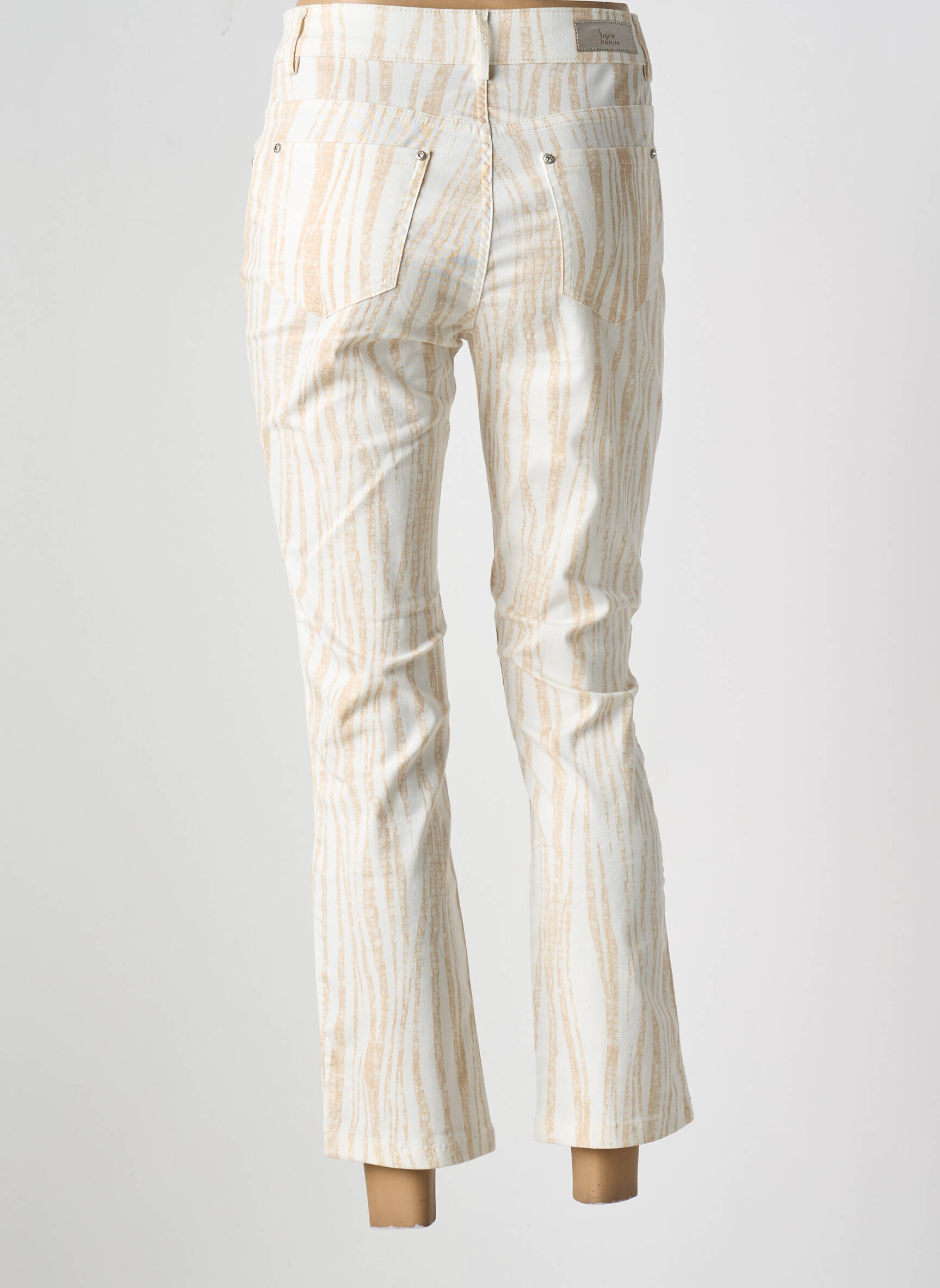 Craquez pour ce pantalon 7/8 signé Signe Nature à prix mini, idéal pour celles qui veulent afficher un style tendance sans se ruiner. Sa coupe moderne met en valeur la silhouette tandis que son imprimé discret façon zébré beige et blanc apporte une touche d’originalité facile à assortir pour tous les looks du quotidien. C’est le bon plan mode à saisir pour renouveler votre vestiaire à petit prix.