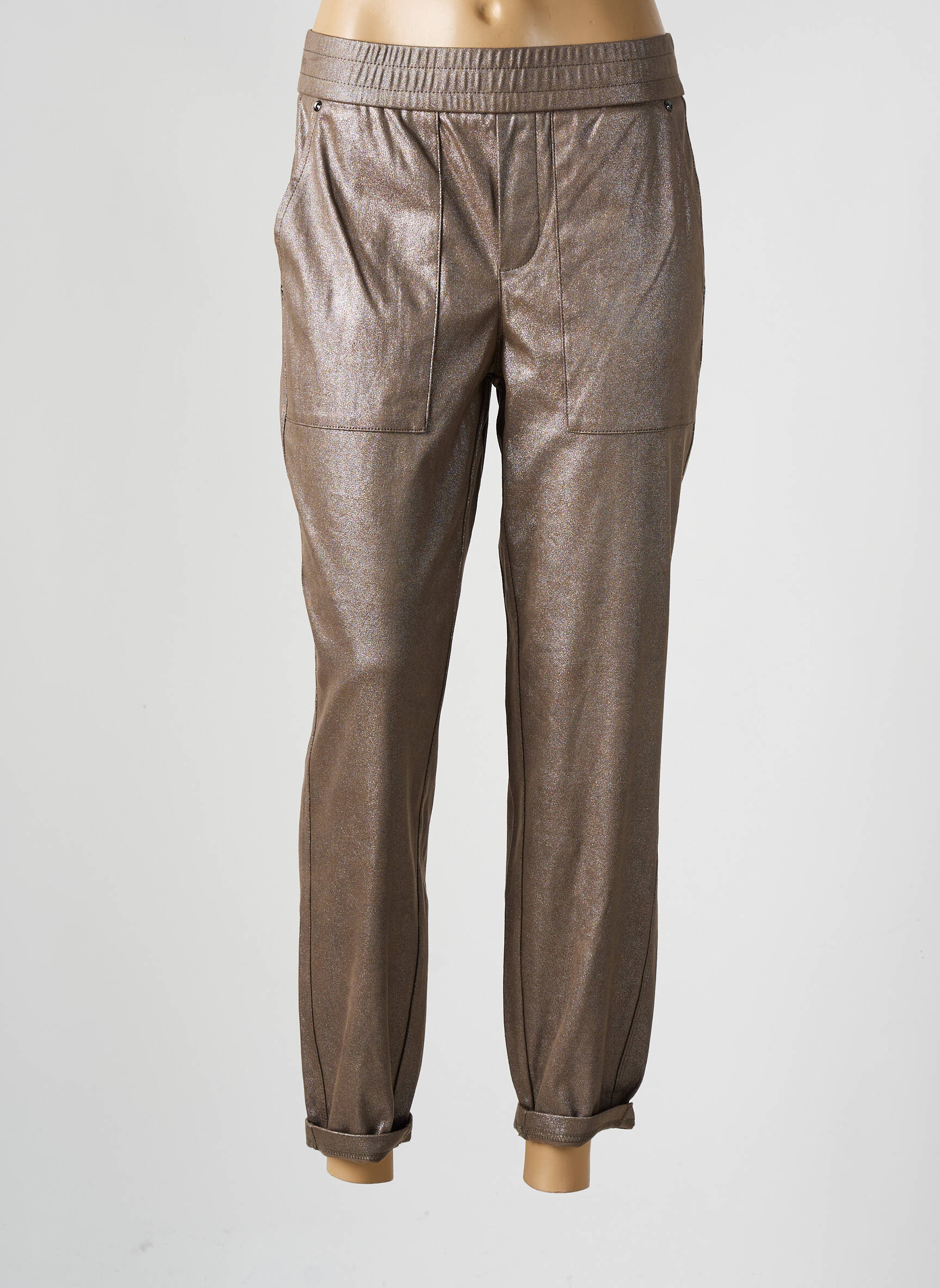 Ce pantalon s’accorde parfaitement avec un top uni pour mettre en valeur l’éclat subtil de la matière, tandis qu’une veste courte ou un blazer structuré complètera naturellement le look pour un style chic en journée comme en soirée. Pour les chaussures, des baskets blanches pour une allure décontractée ou des sandales à talons pour une note plus féminine sont idéales, et côté accessoires, un petit sac à bandoulière et quelques bijoux fins sublimeront l’ensemble sans trop en faire.