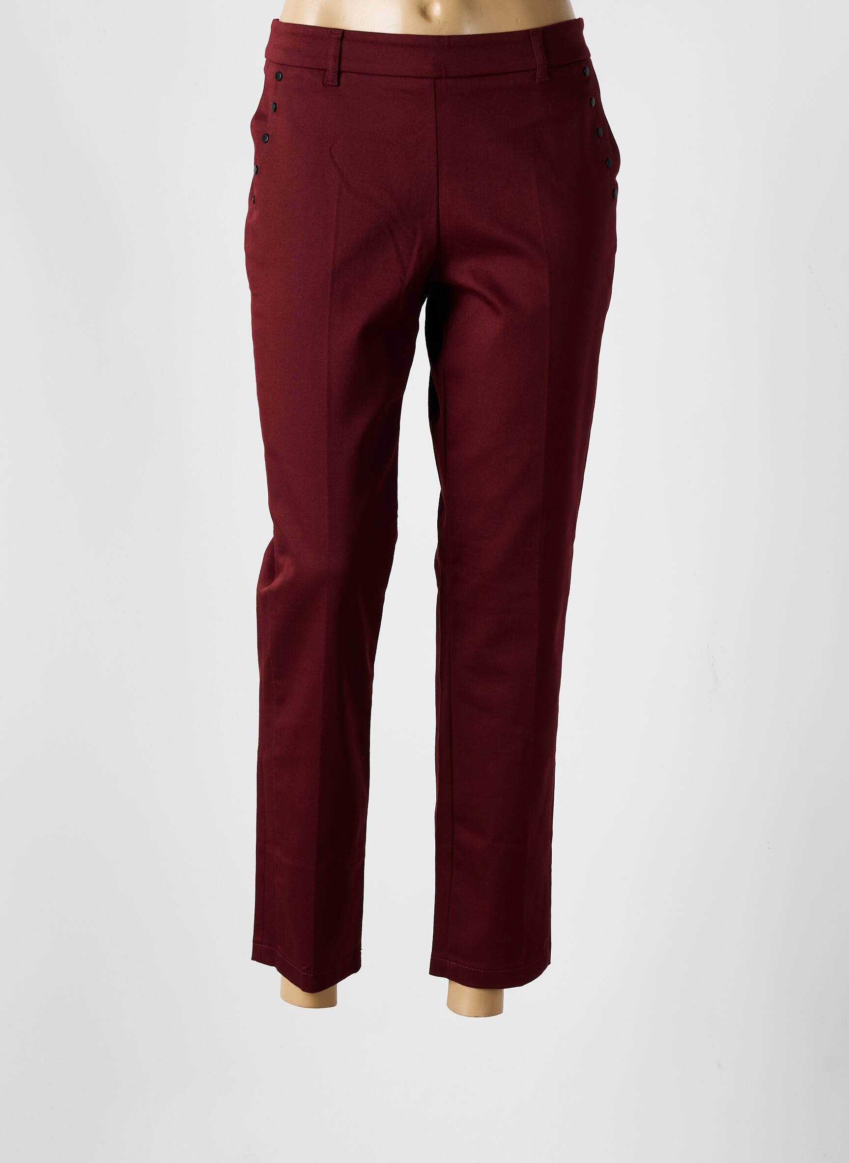 Craquez pour ce pantalon 7/8 de la marque TAIFUN, une pièce élégante à prix mini qui va booster votre dressing sans casser votre budget. Avec sa coupe moderne qui met en valeur la silhouette, sa teinte bordeaux tendance et son détail de boutons sur les poches, il sera parfait pour apporter une touche chic à toutes vos tenues du quotidien comme au bureau. Profitez de cette belle affaire pour ajouter un essentiel mode, alliant style, confort et économies.