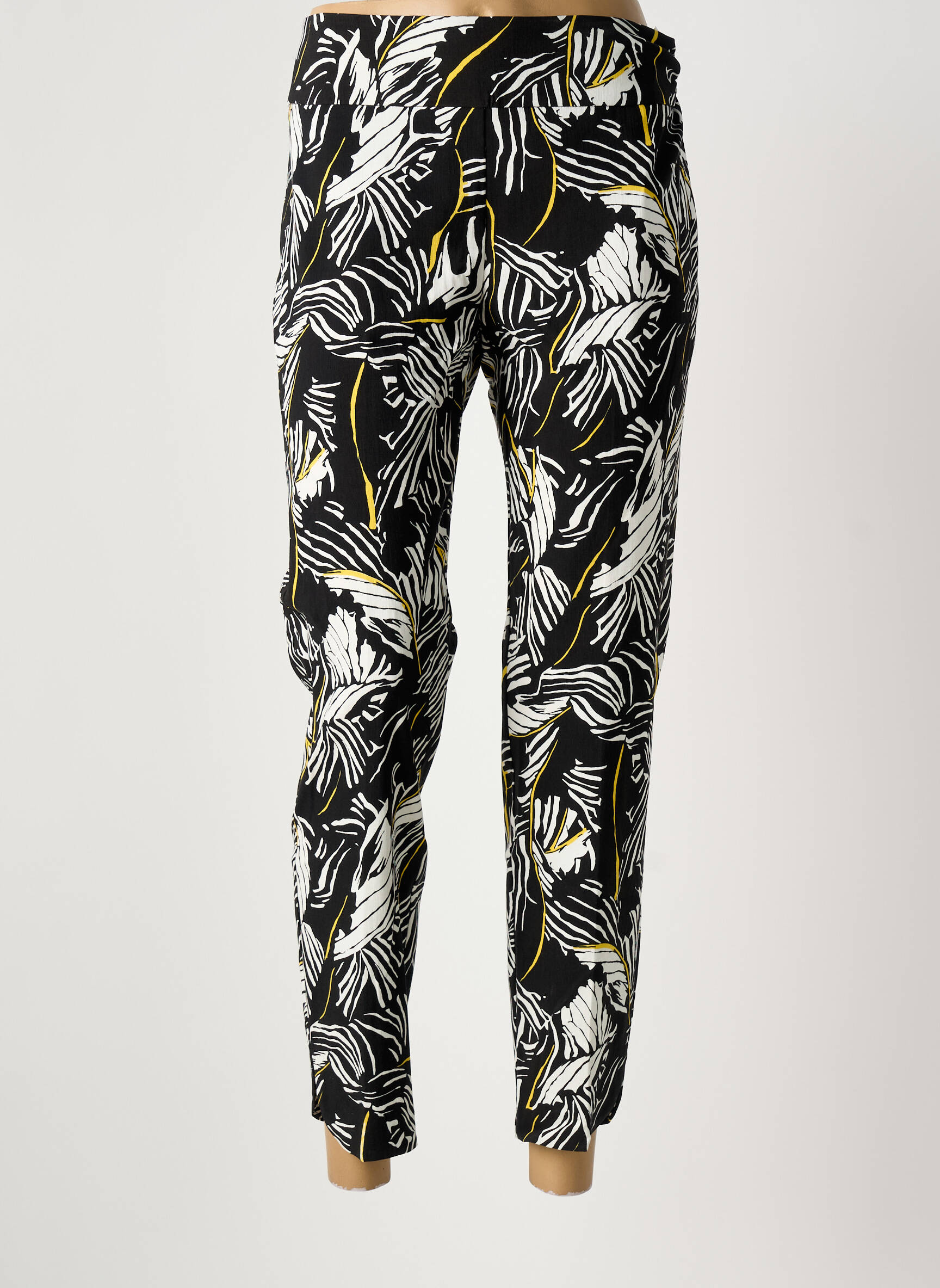 Profitez d'une offre irrésistible avec ce pantalon 7/8 de la marque UP ! qui combine tendance et petit prix pour un look chic sans casser votre budget. Sa coupe moderne met en valeur la silhouette, tandis que son motif feuillage graphique noir et blanc rehaussé de touches jaunes apporte une note originale à toutes vos tenues, parfait pour dynamiser votre garde-robe sans se ruiner.