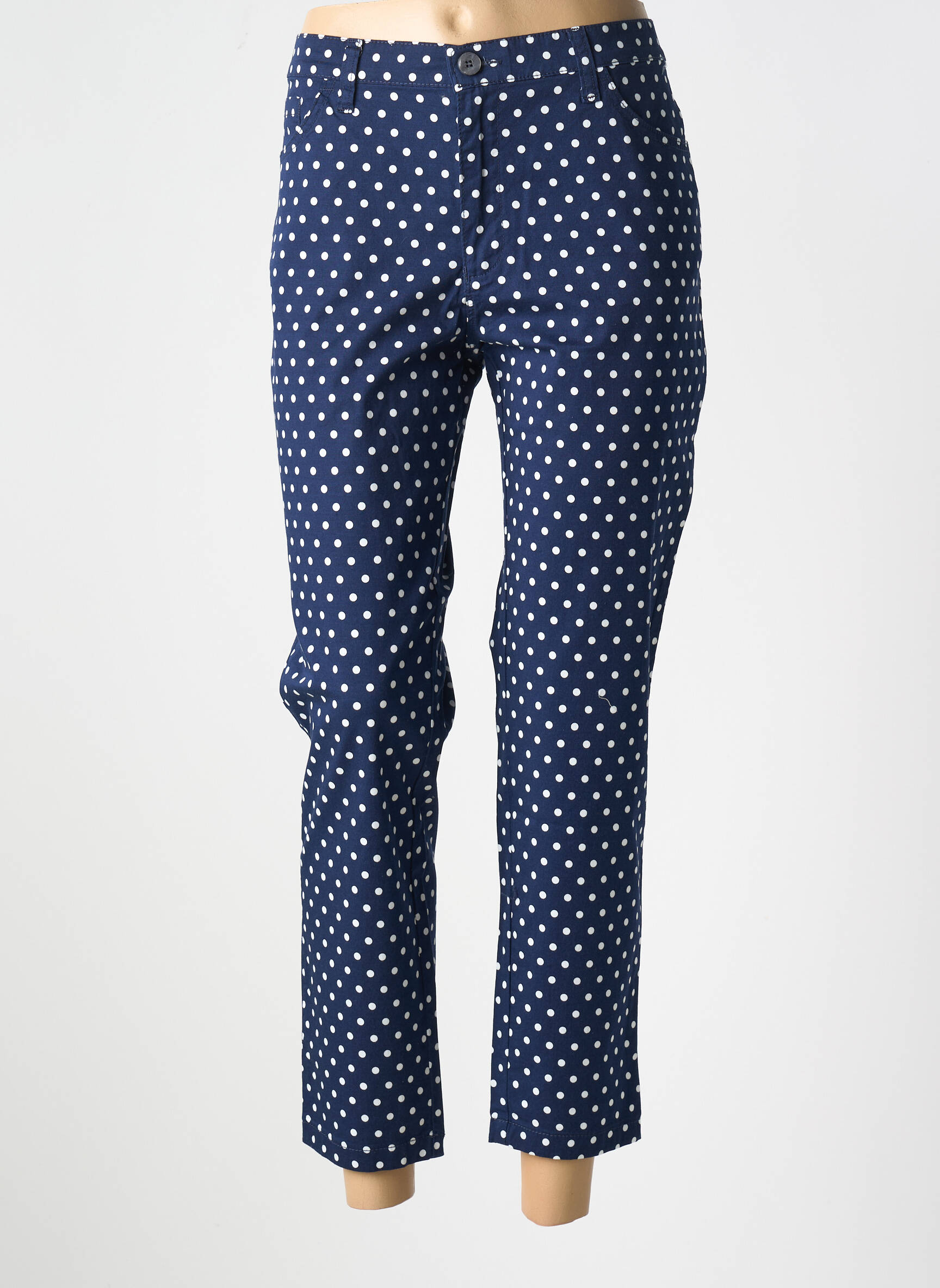 Et si votre style osait flirter avec la poésie ? Ce pantalon 7/8 pour femme de la marque WALTRON, habillé d’un motif à pois blancs sur fond bleu marine, dévoile une coupe ajustée qui souligne élégamment la silhouette tout en offrant une allure à la fois moderne et ludique.