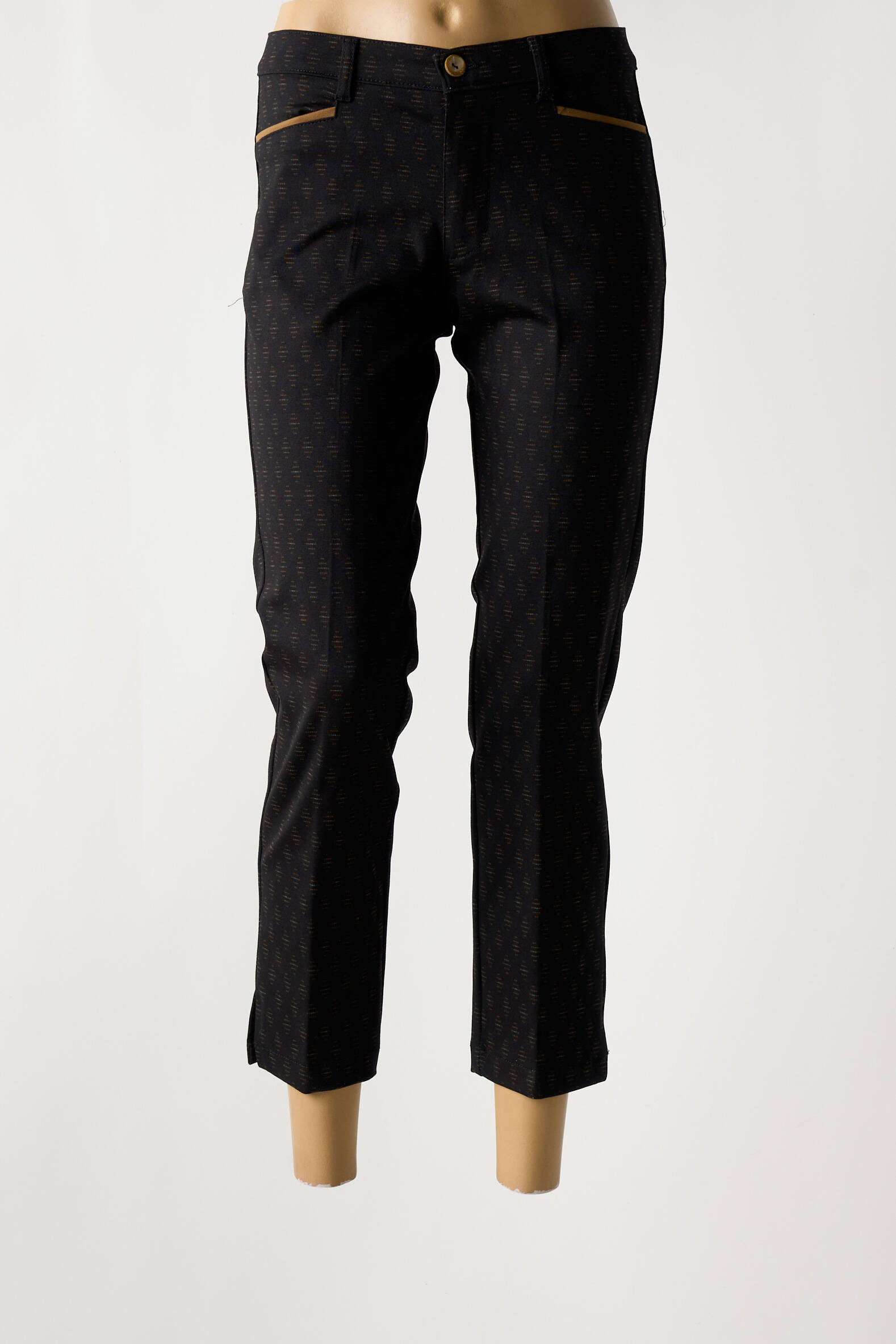 Qui aurait cru qu’un simple pantalon pouvait allier élégance subtile et caractère affirmé ? Ce pantalon 7/8 signé WALTRON pour femme se distingue par sa coupe ajustée qui dévoile délicatement la cheville, tandis que son motif discret et sa couleur sombre apportent une touche sophistiquée à toute tenue. Les petites touches de détails, comme les poches avant soulignées d’un fin liseré, renforcent son allure moderne et chic, idéale pour une allure urbaine raffinée.