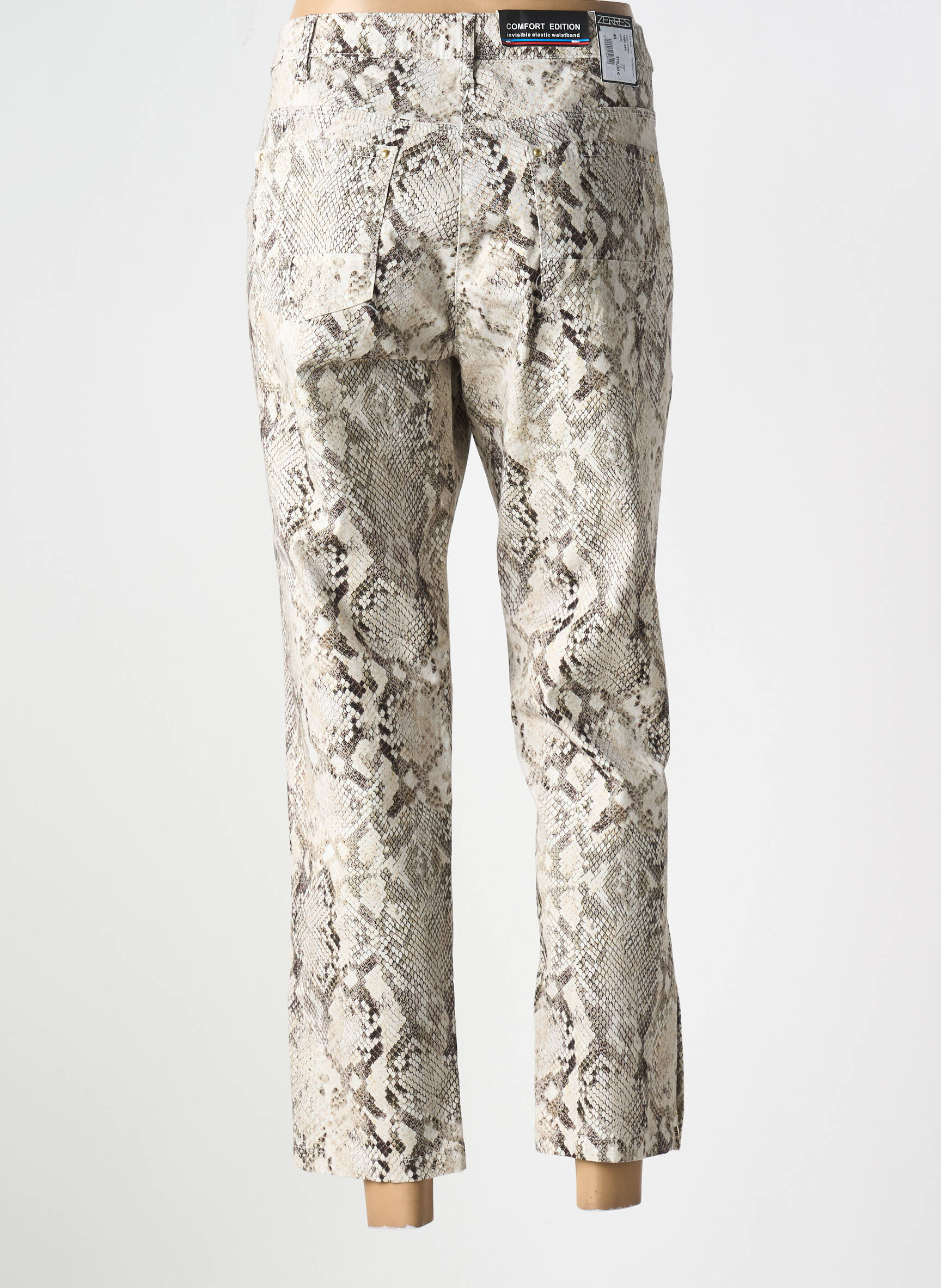 Profitez d’un vrai bon plan mode avec ce pantalon 7/8 de la marque Zerres à prix tout doux, parfait pour apporter une touche tendance à votre dressing sans vous ruiner. Son imprimé python original et élégant fait la différence et mettra facilement votre silhouette en valeur, idéal pour un look moderne aussi bien en journée qu’en soirée. Saisissez l’occasion de renouveler votre garde-robe avec cette pièce unique au meilleur prix !