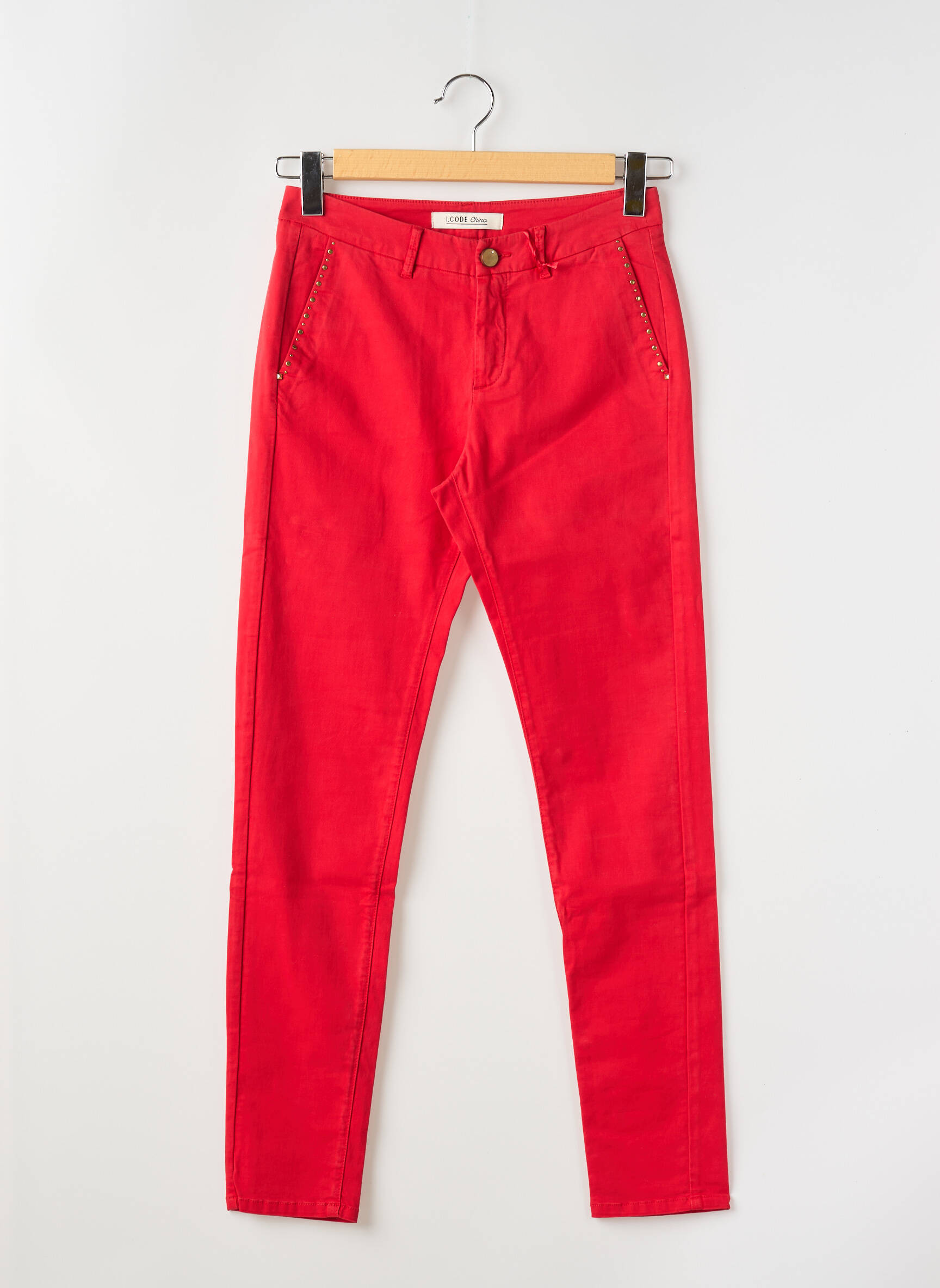 Profitez d’un look tendance à prix canon avec ce pantalon chino pour femme signé I.CODE by IKKS, une pièce incontournable pour illuminer votre dressing grâce à sa couleur rouge éclatante et sa coupe ajustée qui met en valeur la silhouette, le tout à prix mini pour celles qui aiment se faire plaisir sans se ruiner. Les détails raffinés au niveau des poches ajoutent une touche originale à ce basique revisité, parfait pour dynamiser vos tenues du quotidien sans compromettre votre budget.