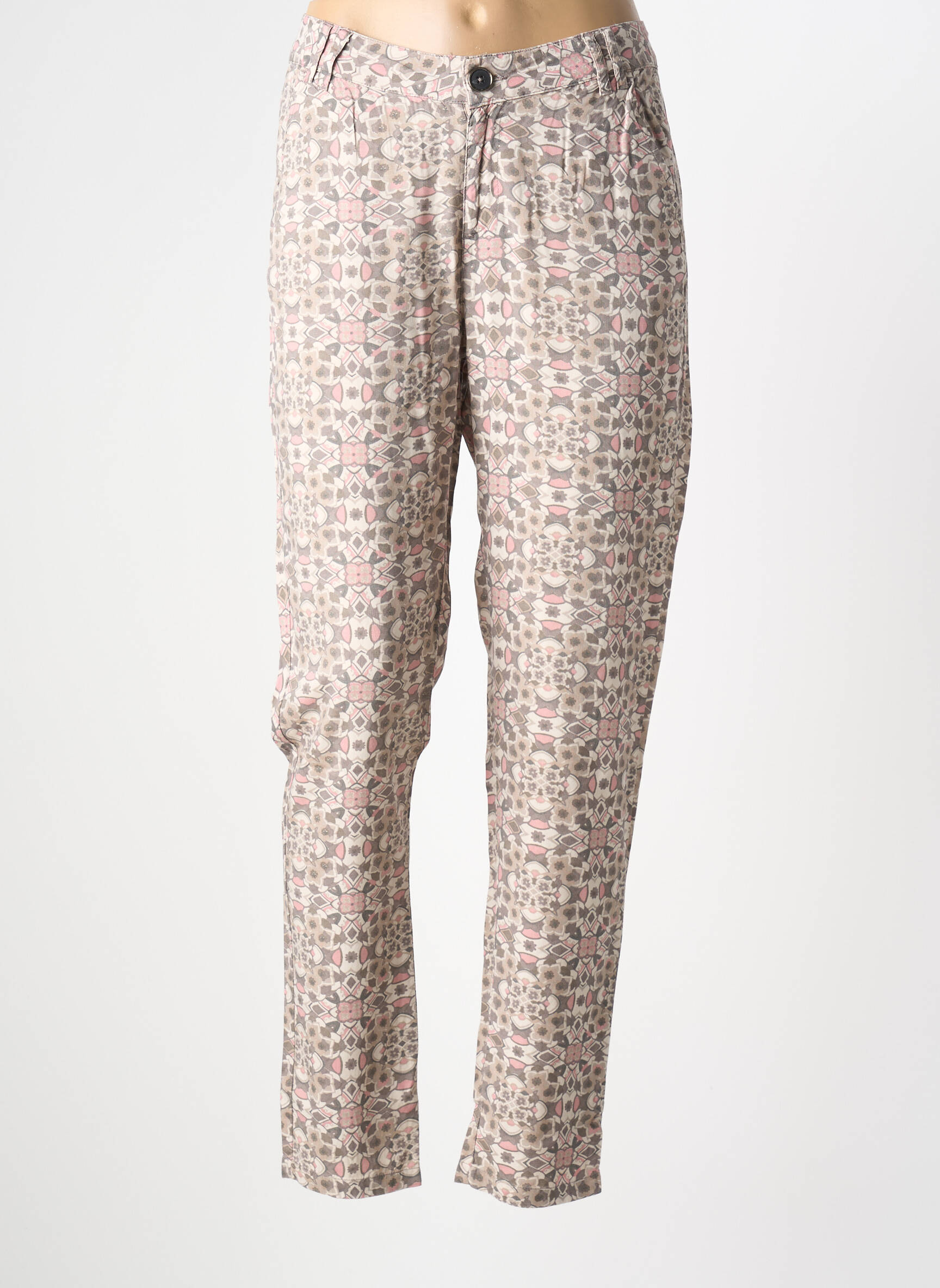 Pour adopter un look tendance avec ce pantalon, il suffit de l’associer à un top uni pour mettre en valeur ses motifs subtils et jouer sur une silhouette moderne. Une veste en jean ou un blazer léger viendra parfaire l'ensemble pour un style aussi bien adapté à une journée de travail qu'à une sortie décontractée. Pour les chaussures, des sandales ou des derbies s’accorderont parfaitement, tandis qu’un accessoire discret comme une ceinture fine ou un petit sac en cuir complétera votre tenue en toute simplicité.