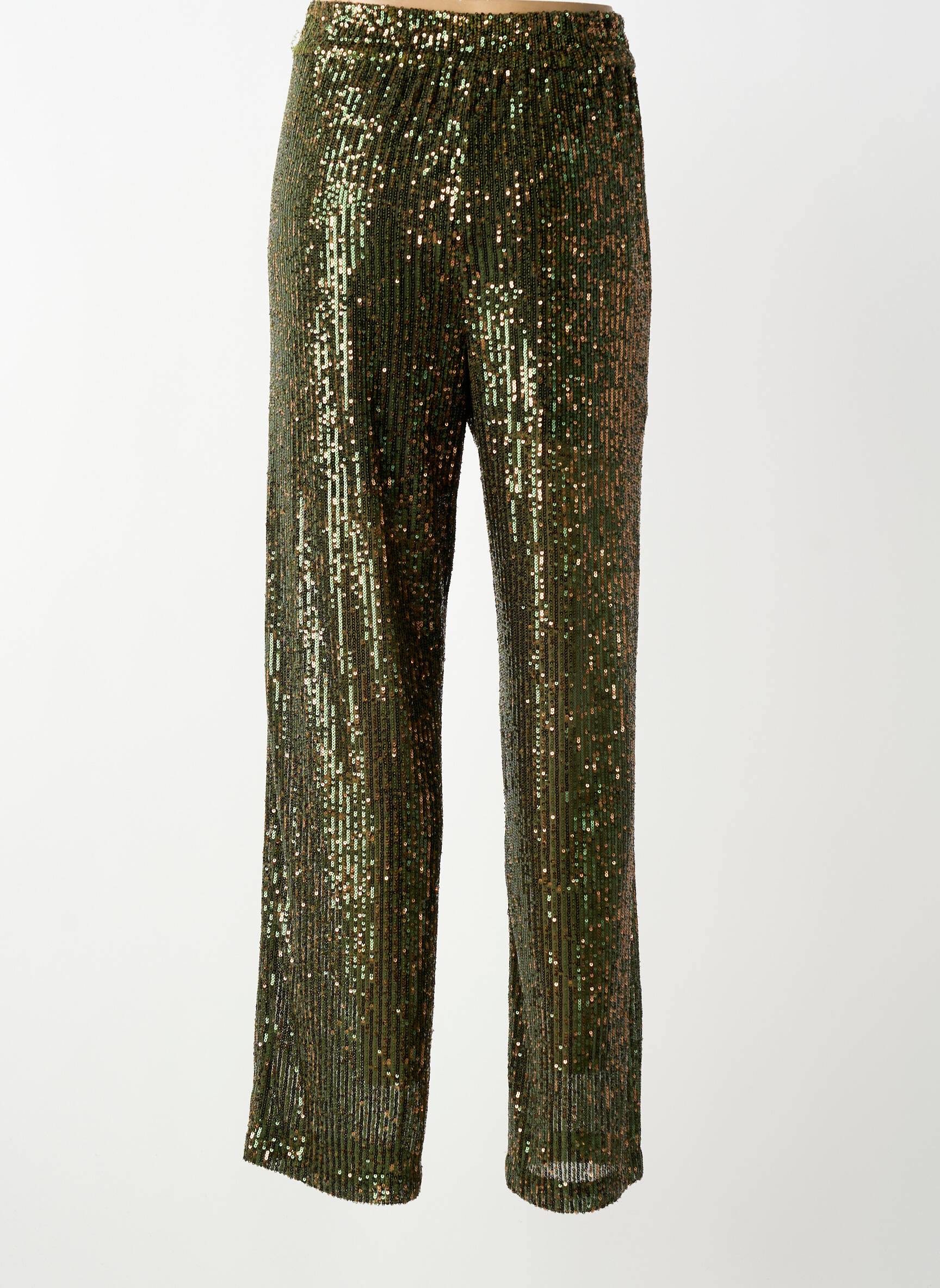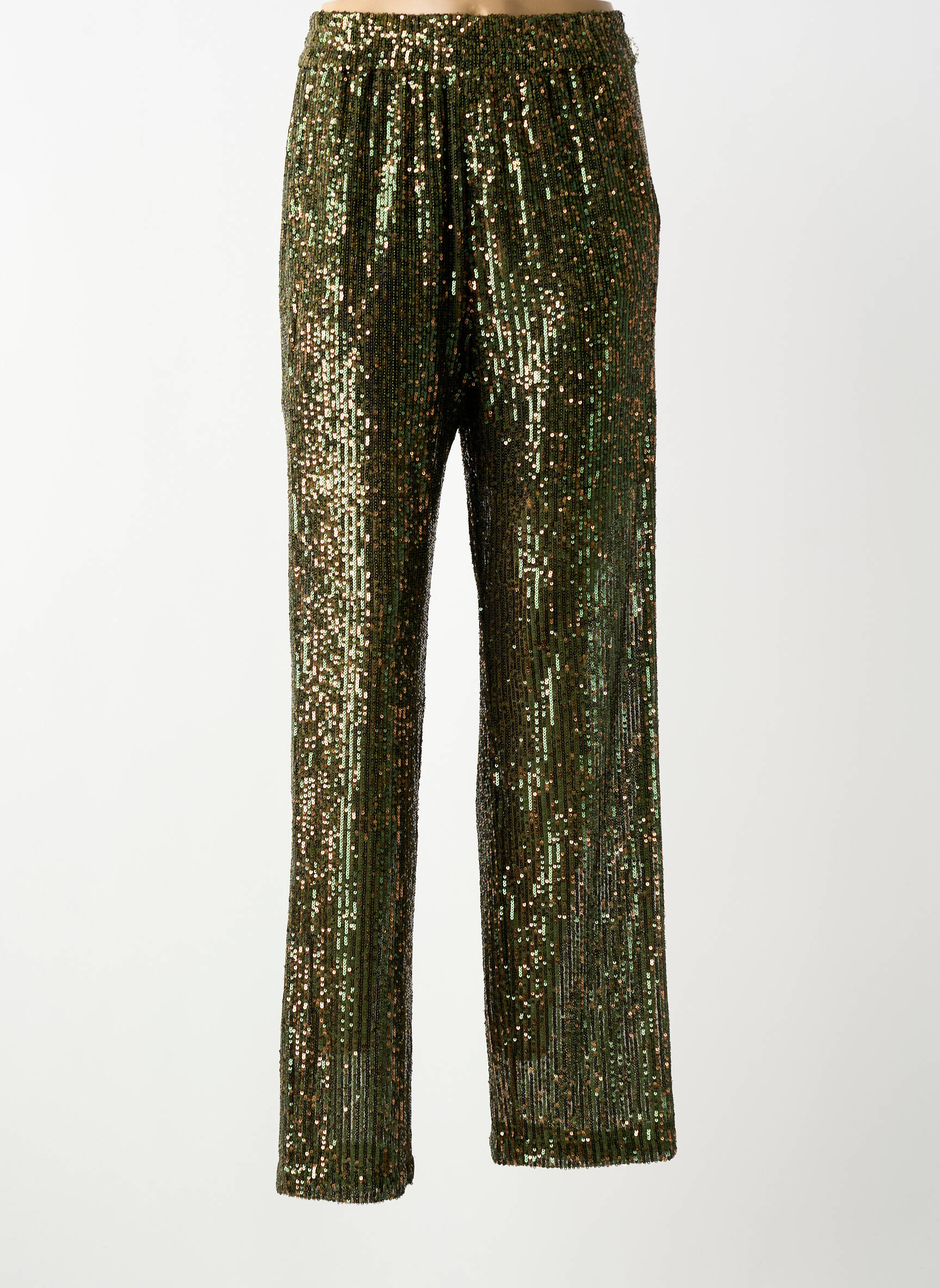 Voici une occasion à ne pas manquer pour adopter une pièce tendance sans vous ruiner avec ce pantalon droit pour femme signé Bellerose. Sa coupe fluide est sublimée par un joli tissu entièrement recouvert de sequins vert kaki, apportant une touche sophistiquée et lumineuse à toutes vos tenues de soirée ou de fête, tout cela à prix réduit.