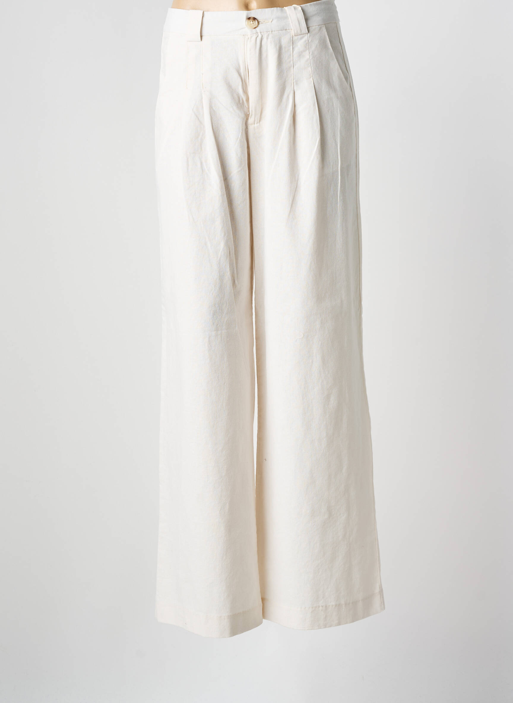 Profitez d’une belle occasion pour renouveler votre dressing sans vous ruiner avec ce pantalon droit pour femme signé GARCIA, parfait pour une allure à la fois élégante et décontractée. Sa coupe large et fluide, associée à un tombé impeccable, apporte une touche de fraîcheur et de modernité à vos tenues du quotidien ou de bureau, tout en restant facile à assortir avec vos hauts préférés. Ce pantalon blanc cassé mise sur des détails subtils comme les plis marqués à l’avant et la fermeture boutonnée, pour un look soigné à petit prix.