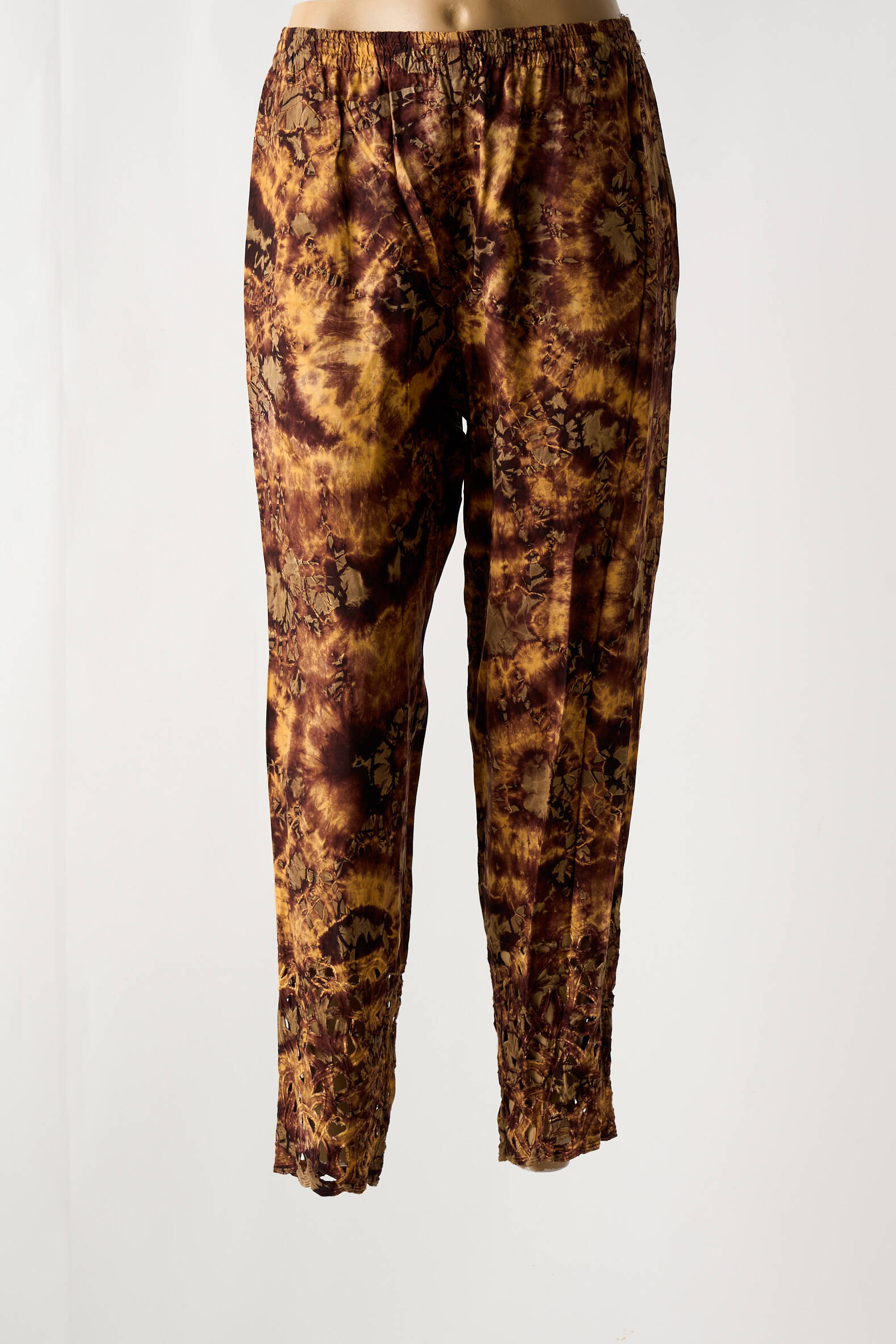 Pour un look tendance sans se ruiner, découvrez ce pantalon droit pour femme signé GARUDA GARUZO, parfait pour apporter une touche d’originalité à votre dressing grâce à son motif effet tie and dye dans des tons chauds et ses finitions froncées en bas de jambe ; une pièce mode à prix mini à ne pas laisser passer pour renouveler votre style tout en faisant des économies.