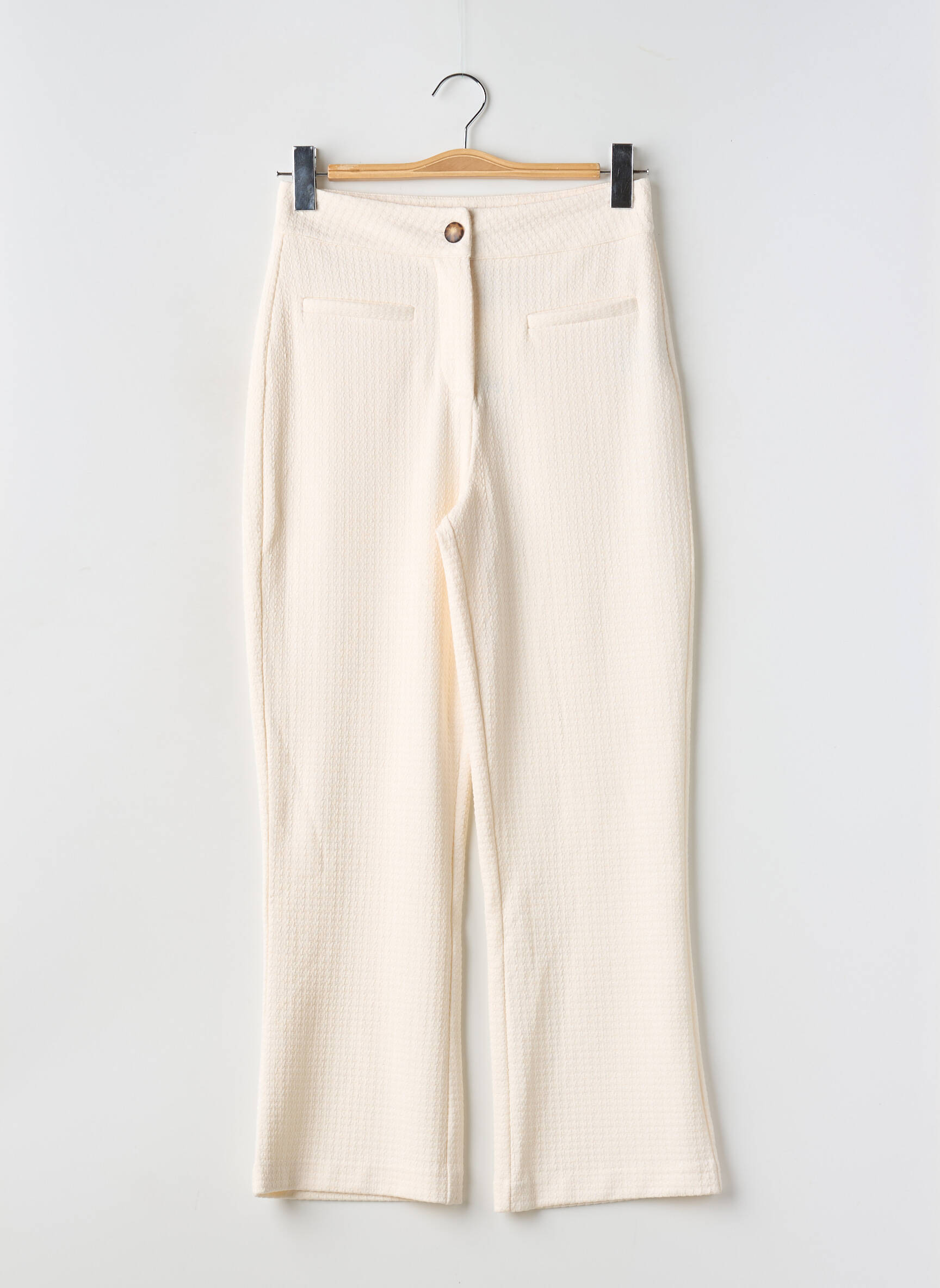 Ce pantalon crème peut se porter avec un top coloré ou une blouse fluide pour une allure printanière et féminine, ou bien avec un pull léger en maille pour une touche confortable et tendance. Associez-le à une paire de baskets pour un look décontracté en journée ou placez-le avec des sandales à talons pour un effet plus habillé le soir. Un blazer structuré ou une veste en jean viendront facilement compléter votre tenue selon vos envies et la saison.