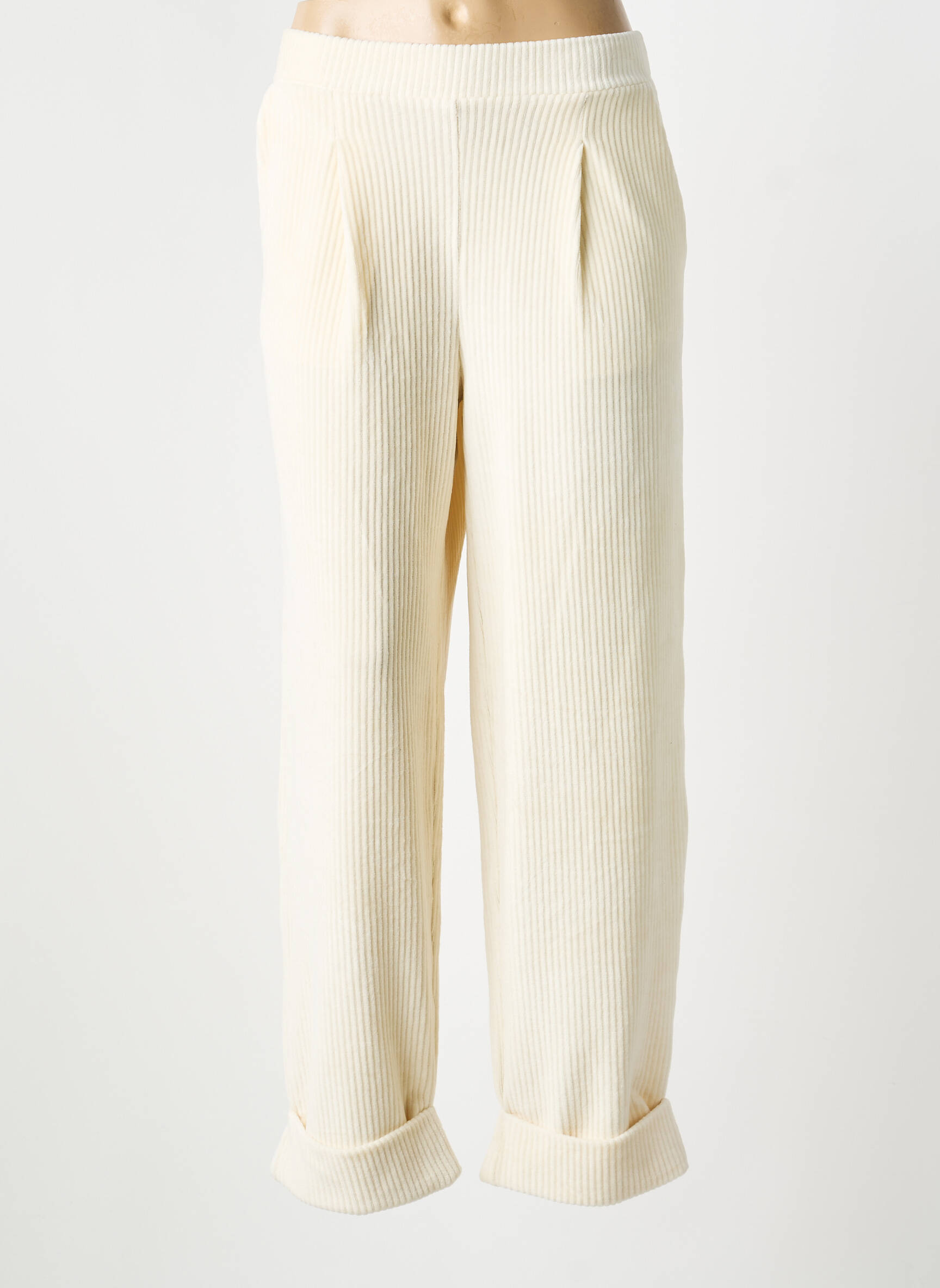 Pour un look décontracté, ce pantalon se marie à merveille avec un t-shirt ajusté rentré à la taille et une paire de baskets blanches. Si vous souhaitez une allure plus sophistiquée, osez l’associer à une chemise fluide et des mocassins, ou encore à un blazer cintré pour une touche chic. Sa couleur claire permet toutes les fantaisies : ajoutez une ceinture contrastante, un pull oversize ou des accessoires dorés pour personnaliser votre style selon vos envies.